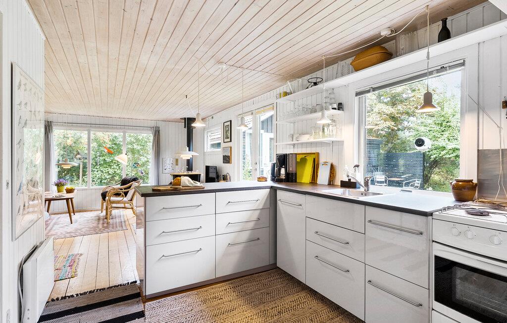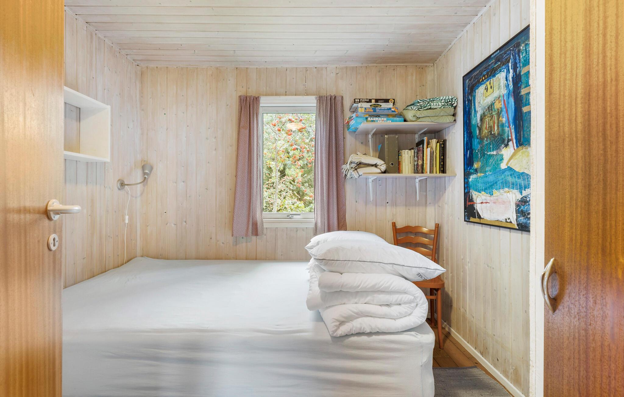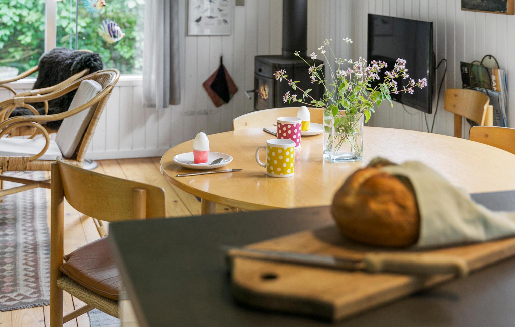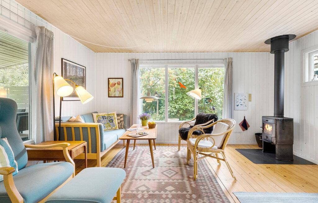 Lad batterierne op helt tæt på naturen sammen med familien. Dette hyggelige træhus emmer af ægte sommerhusstemning med træ på både gulv, vægge og loft, og hyggelig indretning. Tænd op i brændeovnen i hjørnet og slap af i sofaen. Herfra kan I nyde ildens knitren og den grønne natur fra det store vindue. Gennemgående i huset, står smukke og hyggelige nips på hylder og skænke, og billeder på væggene, som giver huset en charme. I haven finder I en bålplads, hvor I kan slutte dagen af med mad over bål og grillede skumfiduser.