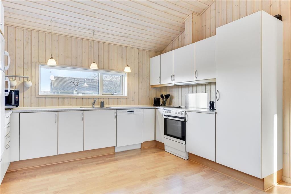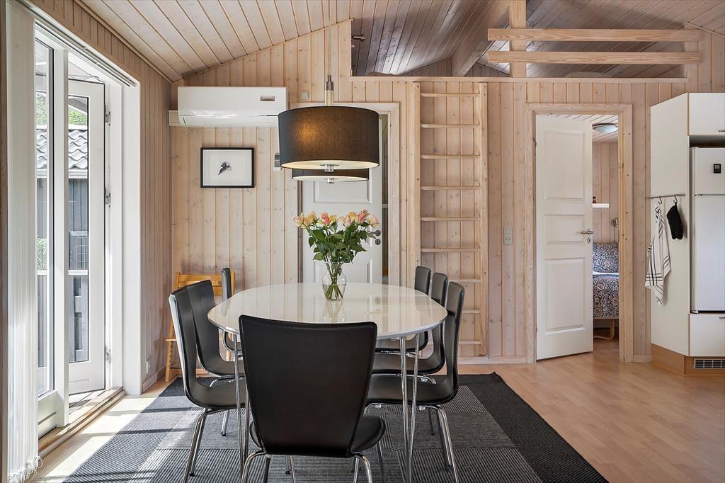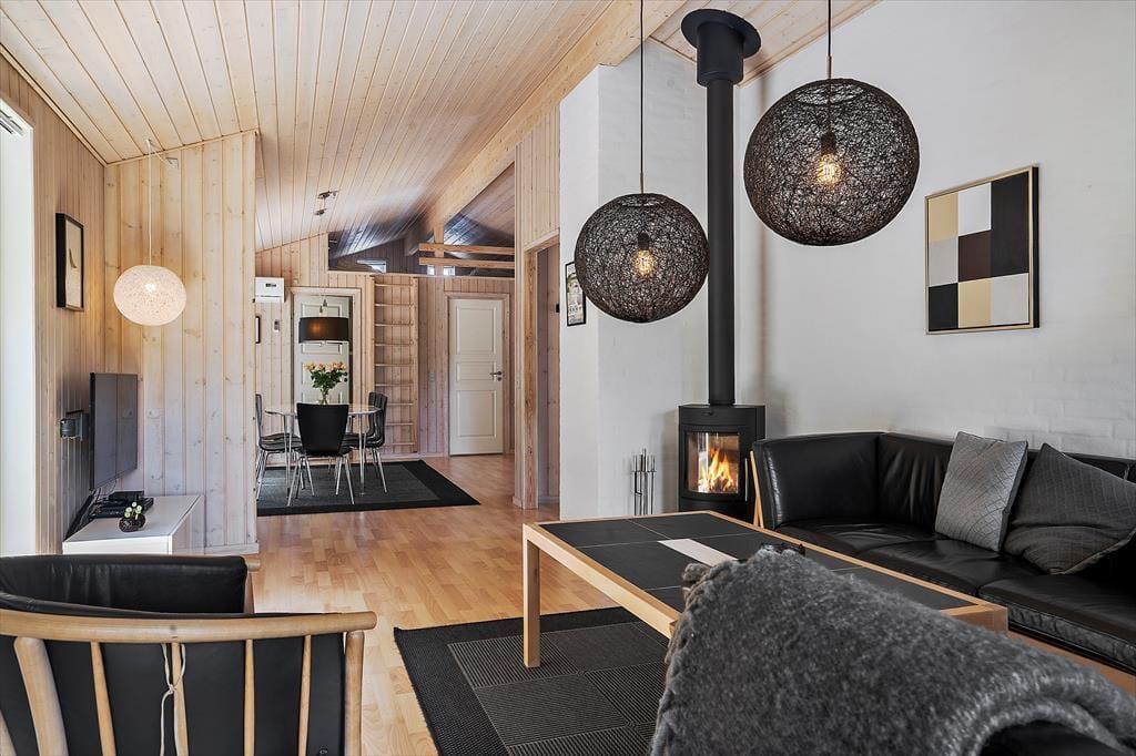 Dette store træsommerhus i Pøt Strandby er skabt til ferier, hvor hele familien kan samles om hygge og samvær. Husets hjerte er det rummelige køkken-alrum, hvor der er god plads til fælles måltider, brætspil og lange samtaler. Når aftenen falder på, kan I trække jer ind i stuen, hvor brændeovnen spreder varme og skaber en hyggelig stemning. Sommerhuset er familievenligt og giver jer både plads til at være sammen og til at finde små rolige stunder. Efter en dag ved stranden kan I forkæle jer selv i spaen eller saunaen, mens resten af familien nyder en stille stund i opholdsrummet.