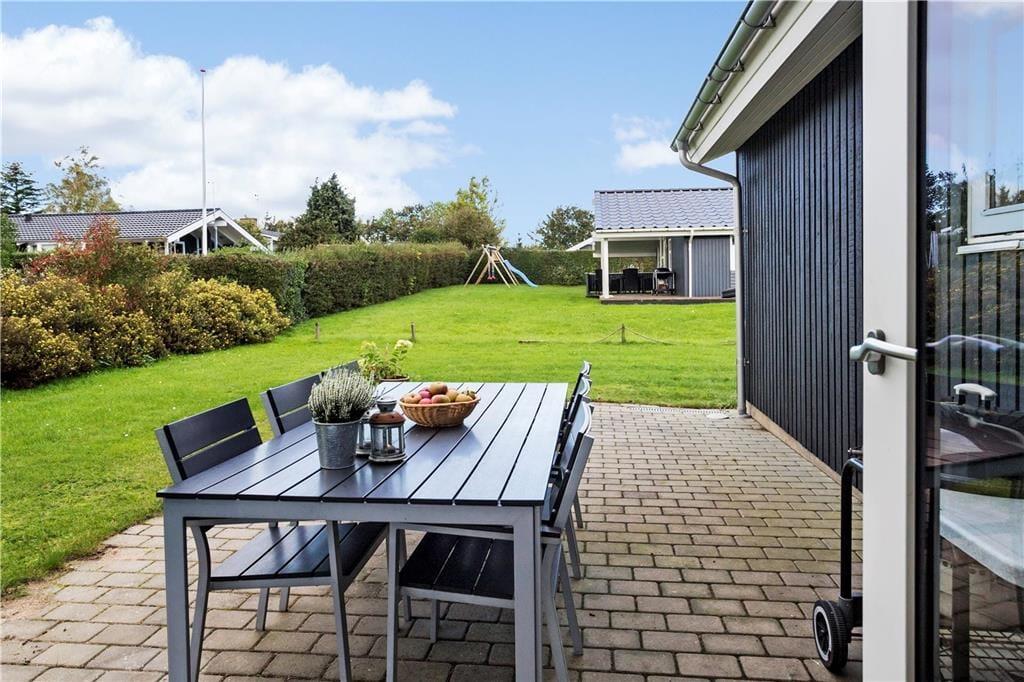 Huset er omgivet af skønne terrasser — hele vejen rundt — så I kan følge solen dagen igennem. Der er også en overdækket terrasse, hvor man kan opholde sig i læ, selv på let regnfulde dage. Den rolige beliggenhed sikrer fred og privatliv, og med nærhed til skov og strand er der gode muligheder for gåture, badeture og naturoplevelser tæt på døren.