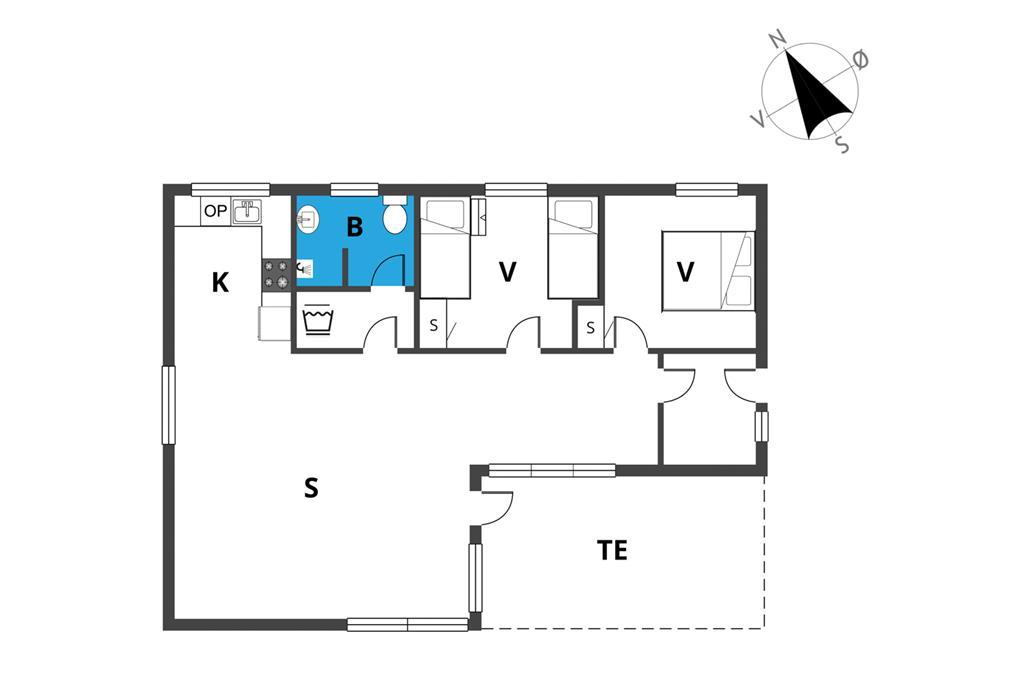 Sommerhus bygget i 1980 i røde mursten. Stor stue med TV/parabol og med udgang til åben terrasse. Huset er praktisk indrettet med køkken i åben forbindelse med den store stue. Mindre badeværelse med bruser. Huset har i alt 5 sovepladser fordelt på to soverum med henholdsvis en dobbeltseng, én enkeltseng og én etageseng. Derudover er der vaskemaskine og internet.