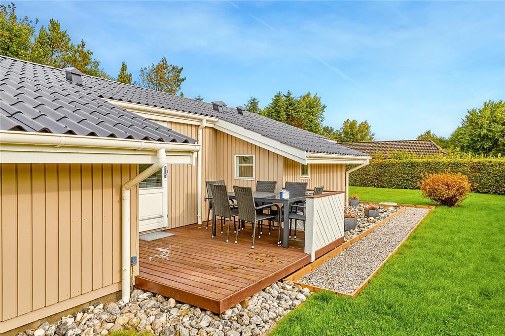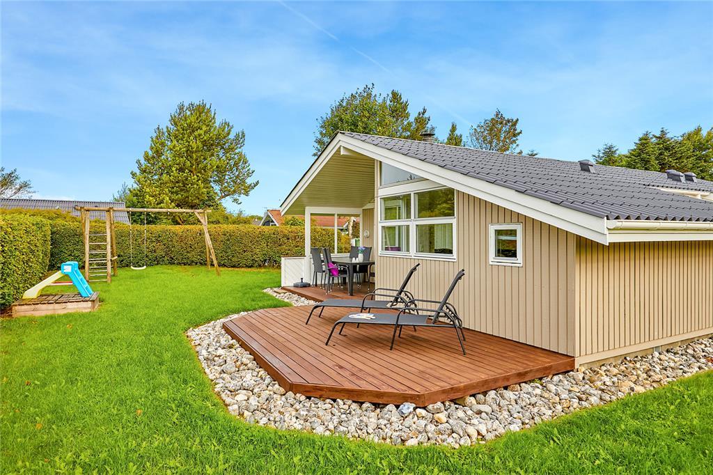 Udenfor fortsætter oplevelsen i den private, lukkede have, hvor der både er trygge rammer og god plads til at være sammen. Haven er særligt børnevenlig, med gyngestativ og sandkasse, så børnene kan lege frit, mens de voksne nyder en stille stund. Med flere terrasser omkring huset kan du altid finde det perfekte sted at slå dig ned – hvad enten du vil have sol, skygge eller læ. Her kan I tænde grillen til lange sommeraftener, nyde morgenkaffen i ro og fred eller samle familien til spil og leg på græsset. Haven skaber både privatliv og plads til udfoldelse, og husdyr er tilladt, så selv familiens firbenede venner kan være med på ferien.