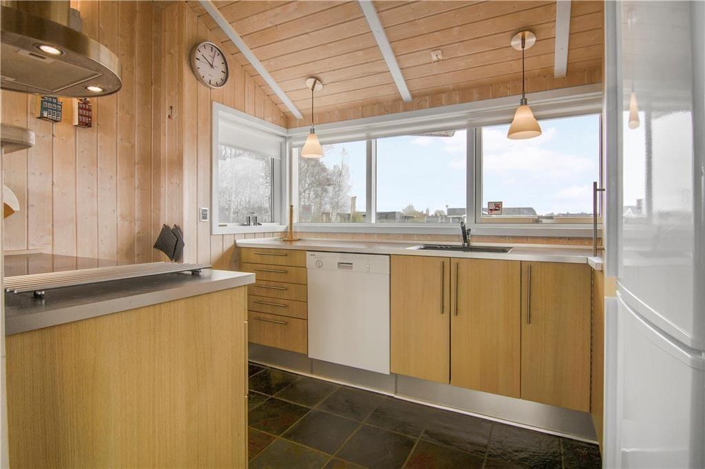 Når du træder indenfor i sommerhuset, bliver du mødt af en lys og luftig atmosfære, der indbyder til hygge og samvær. Den åbne planløsning skaber et naturlig flow mellem opholdsstue og køkken, så familien kan være sammen, uanset om man laver mad, spiller kort eller slapper af med en kop kaffe. Husets indretning er enkel, smagfuld og funktionel – perfekt til både afslapning og aktiviteter. Der er plads til leg og ro, og de rummelige områder gør det nemt at finde et hjørne, hvor man kan trække sig tilbage, hvis behovet for lidt alenetid med en god bog melder sig.