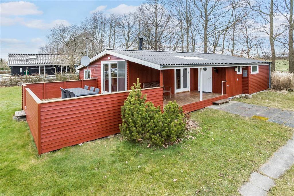 Huset er beliggende på stor grund, hvor der er masser af plads til sjove udendørs aktiviteter. Fine terrasser med mange muligheder for at finde læ kroge. Her kan hele familien let samles om måltidet eller et spil kort. Lige overfor huset findes en legeplads, som også er afbilledet.