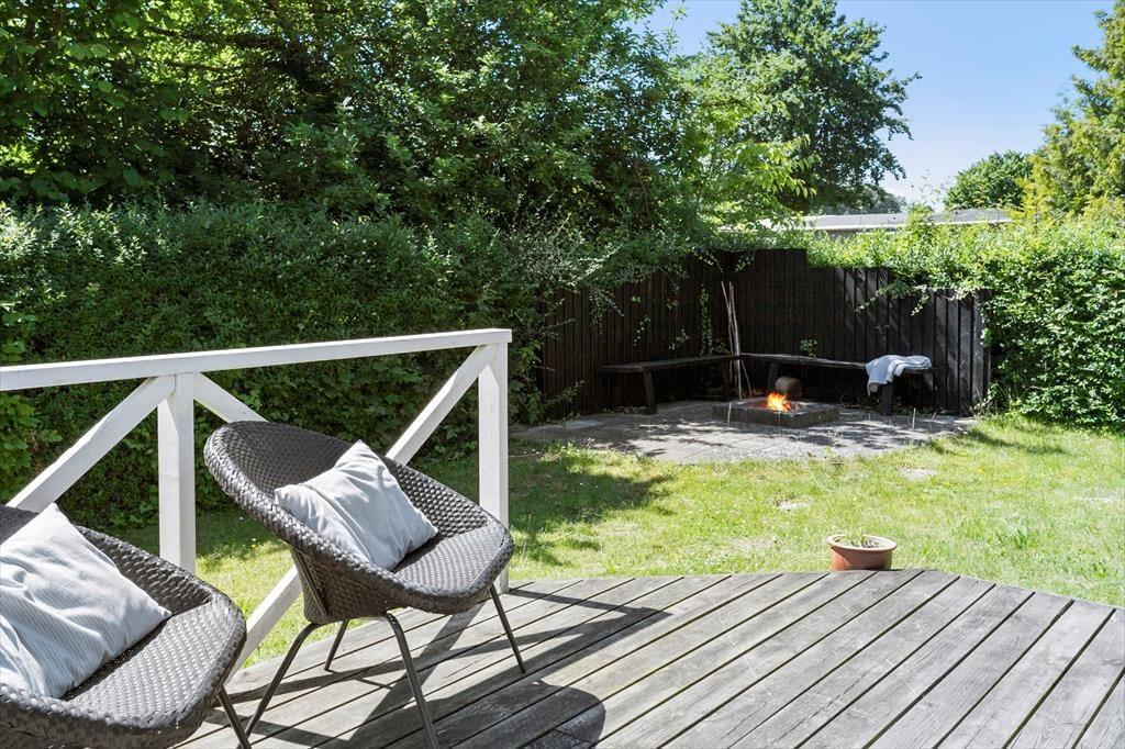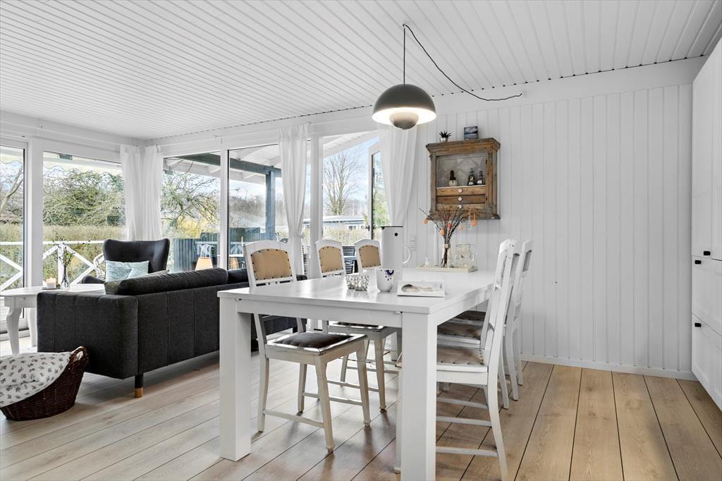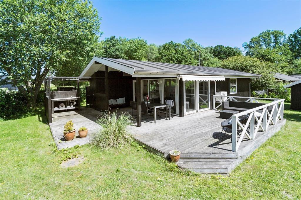 Et hyggeligt sommerhus, hvor feriestemningen både ude og inde er tydelig. Stuen er åben og indbydende, forbundet til køkkenet. Her kan du slappe af foran og nyde det skønne lysindfald fra haven. Hvad med at samle familien til et brætspil eller et godt måltid? Fra stuen er der direkte adgang til den hyggelige overdækkede terrasse, som forlænger sommermånederne. Sommerhuset rummer desuden tre gode værelser og et fint badeværelse.