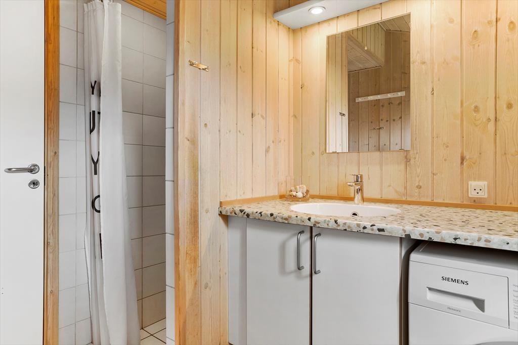 Sommerhuset åbne køkken er fuldt udstyret og klar til at imødekomme dine kulinariske eventyr. Det åbne design skaber en behagelig forbindelse mellem madlavning og samvær, så du kan deltage i samtaler med familien eller venner, mens du tilbereder dejlig mad.