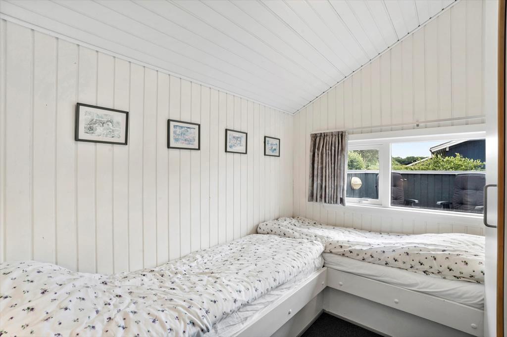 Sommerhuset har tre komfortable værelser med plads til 6 personer. 2 af værelserne er udstyret med dobbeltsenge, mens det tredje har 2 enkeltsenge, hvilket gør det til det ideelle sted for familier eller en gruppe venner.