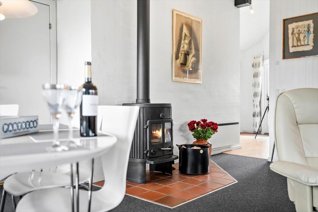 I stuen vil du blive mødt af en indbydende brændeovn, der skaber en varm og hyggelig atmosfære på kølige aftener. Brændeovnen giver ikke kun varme, men tilføjer også en charmerende detalje til rummet. Her kan du slappe af på de komfortable møbler, nyde et godt glas vin og se tv eller streame dine yndlingsfilm og -serier via Chromecast.