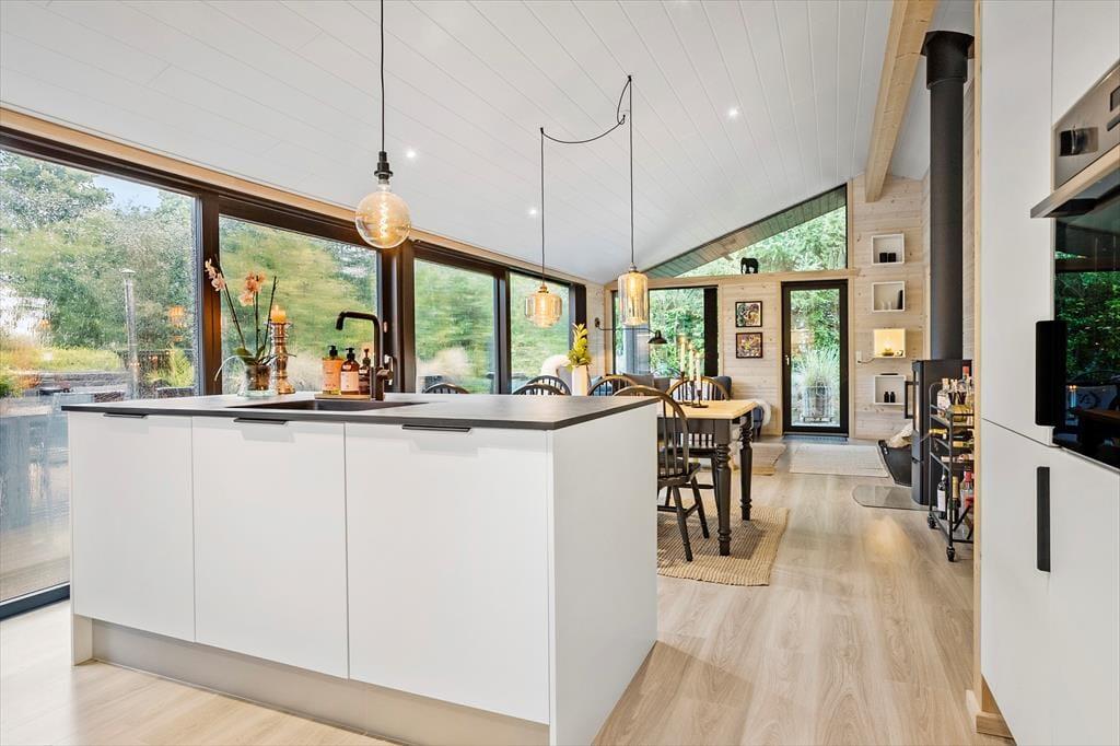 Husets hjerte er køkken-alrummet, som har direkte forbindelse til stuen. Køkkenet byder på alt, hvad I har brug for under jeres ophold, inkl. opvaskemaskine.