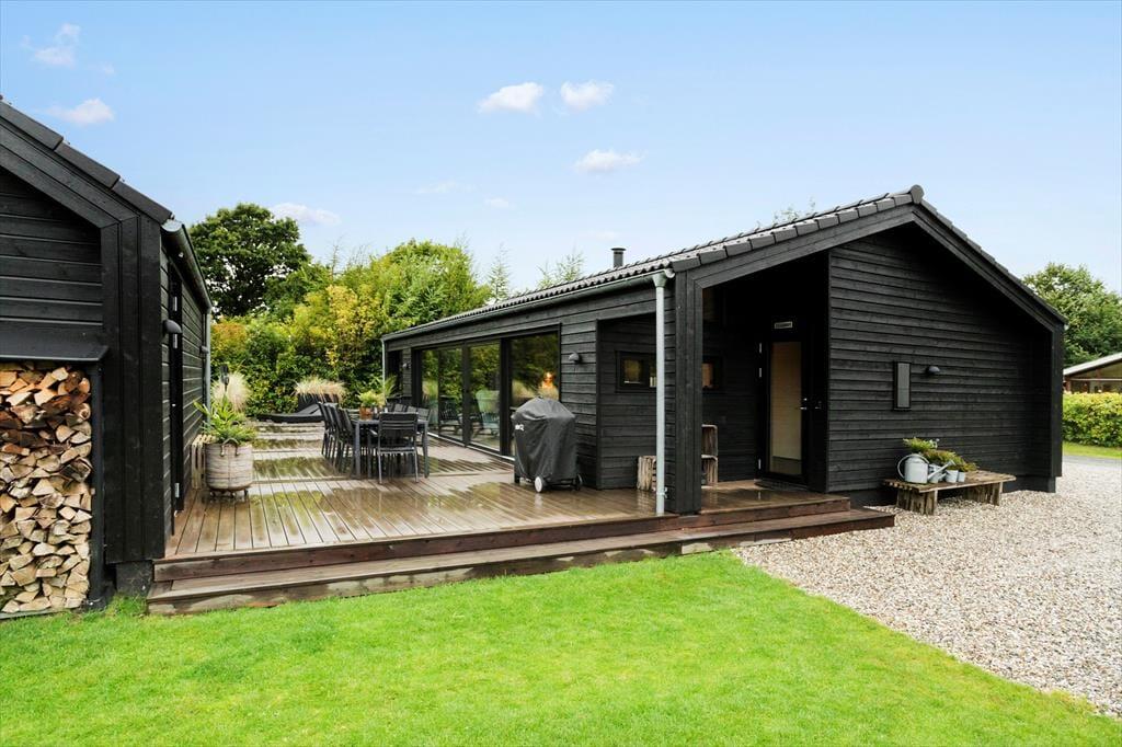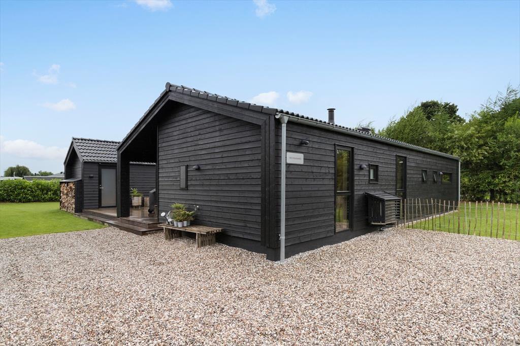 Eksklusivt og moderne sommerhus med udendørs vildmarksbad i Pøt Strandby ved Juelsminde