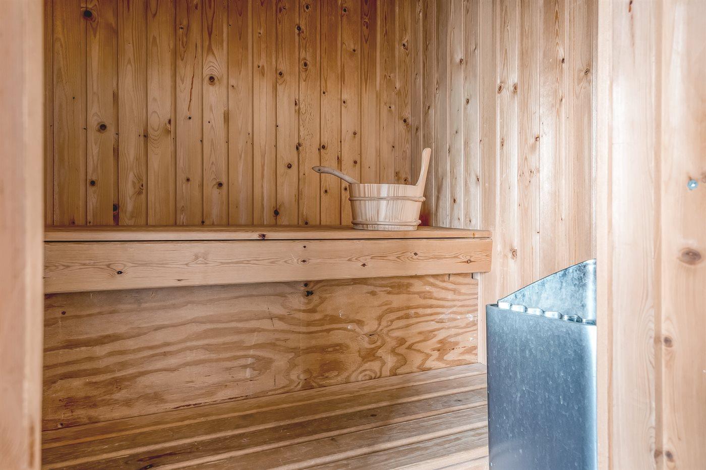 Der er 2 badeværelser med bruseniche og 2 toiletter I saunaen er der mulighed for afslapning.