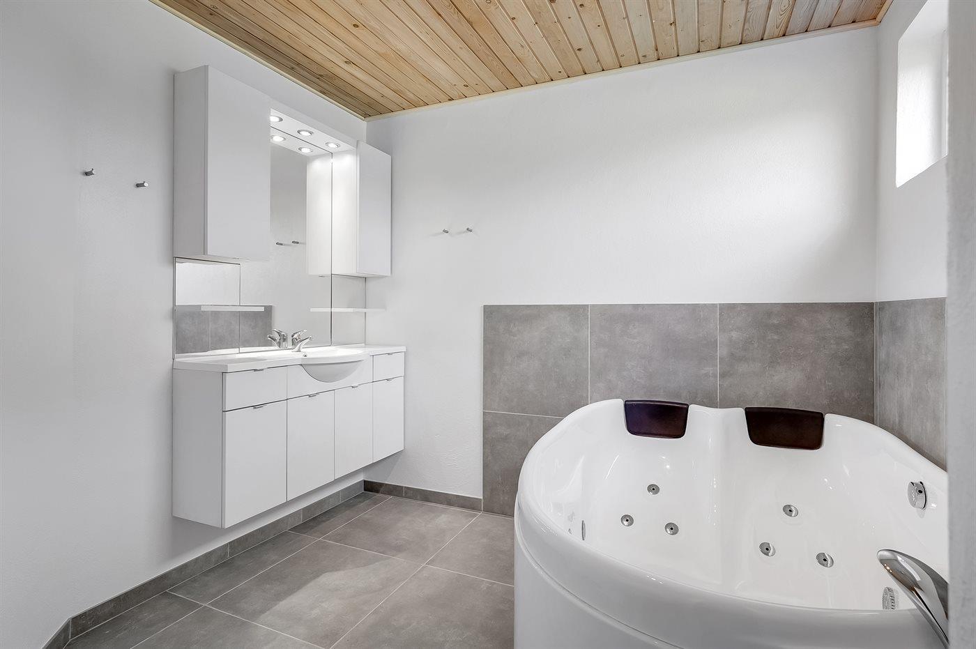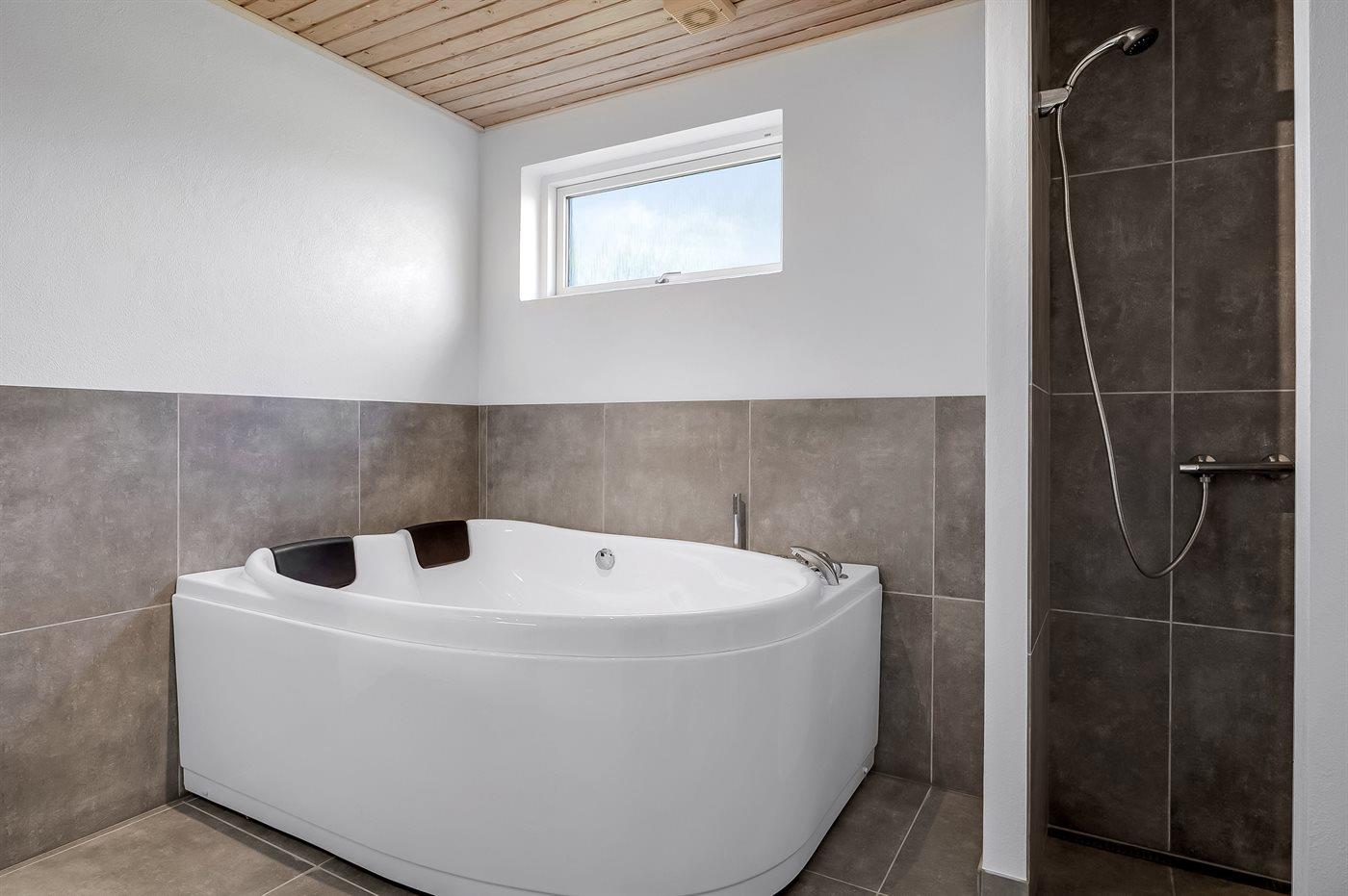Der er 1 badeværelse med bruseniche og 1 toilet.. Der er gulvvarme på 1 badeværelse. I saunaen er der mulighed for afslapning.