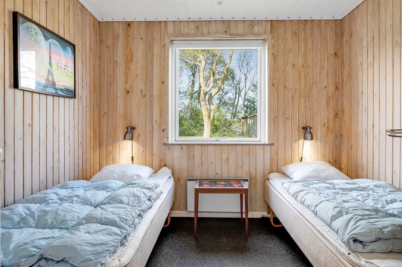 Der er i alt 4 soveværelser. Sovepladserne fordeler sig på: 2 sovepladser i dobbeltseng. 4 sovepladser i enkeltsenge. 2 sovepladser i køjeseng.
