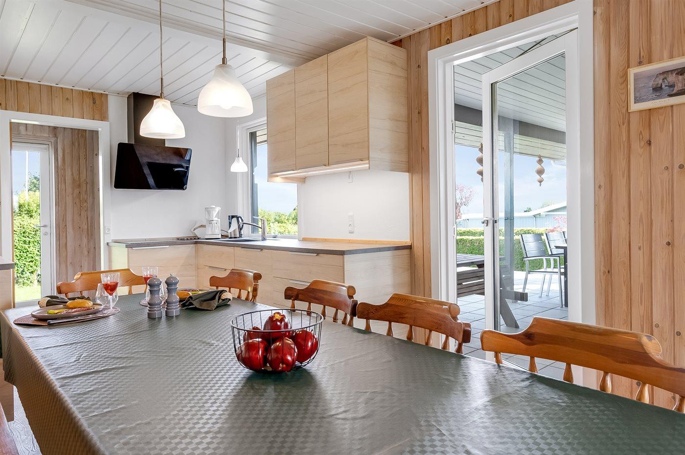 Køkkenet er udstyret med 1 køleskab. Der er 4 induktionskogeplader, varmluftovn, mikrobølgeovn samt opvaskemaskine.