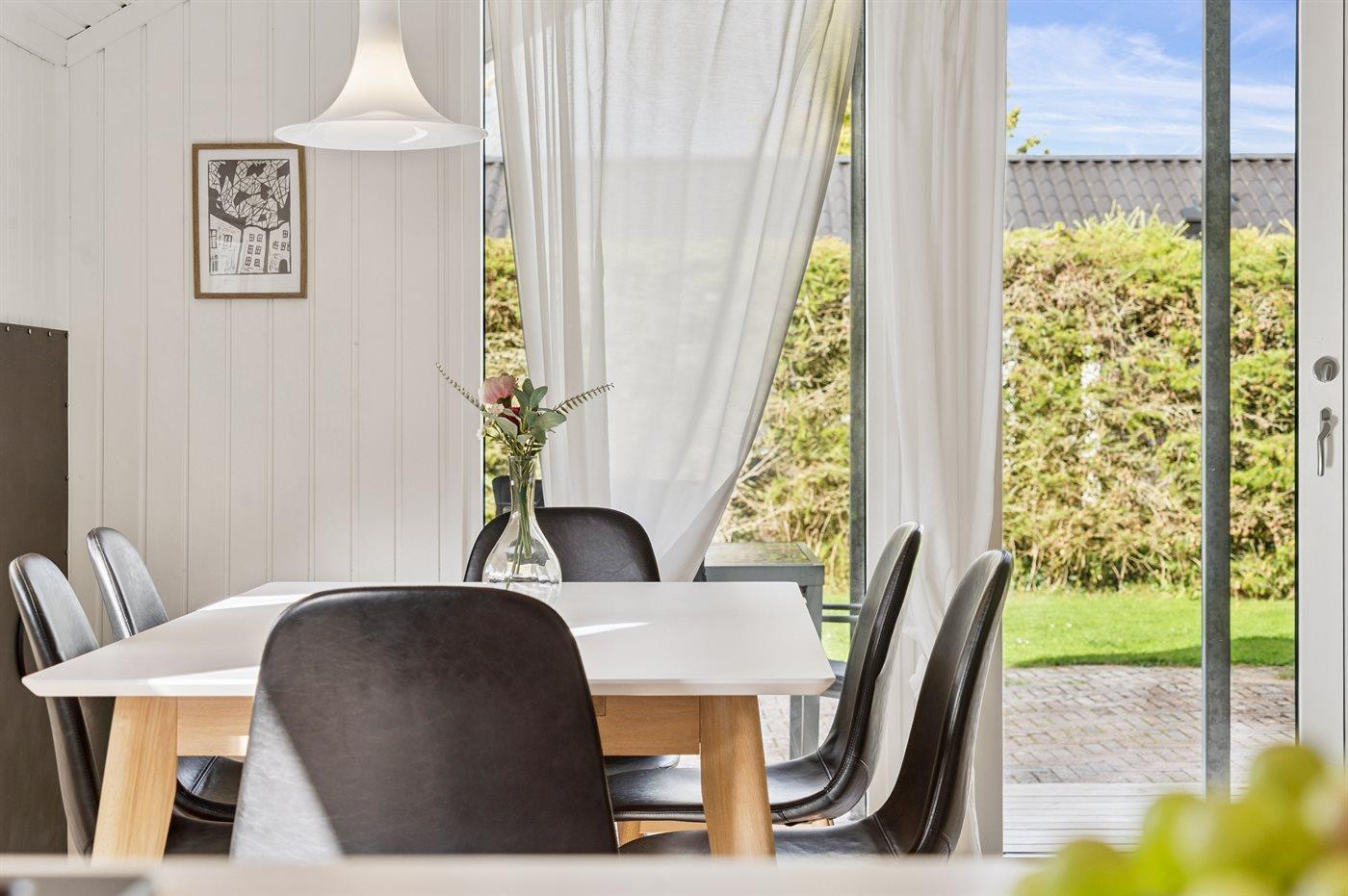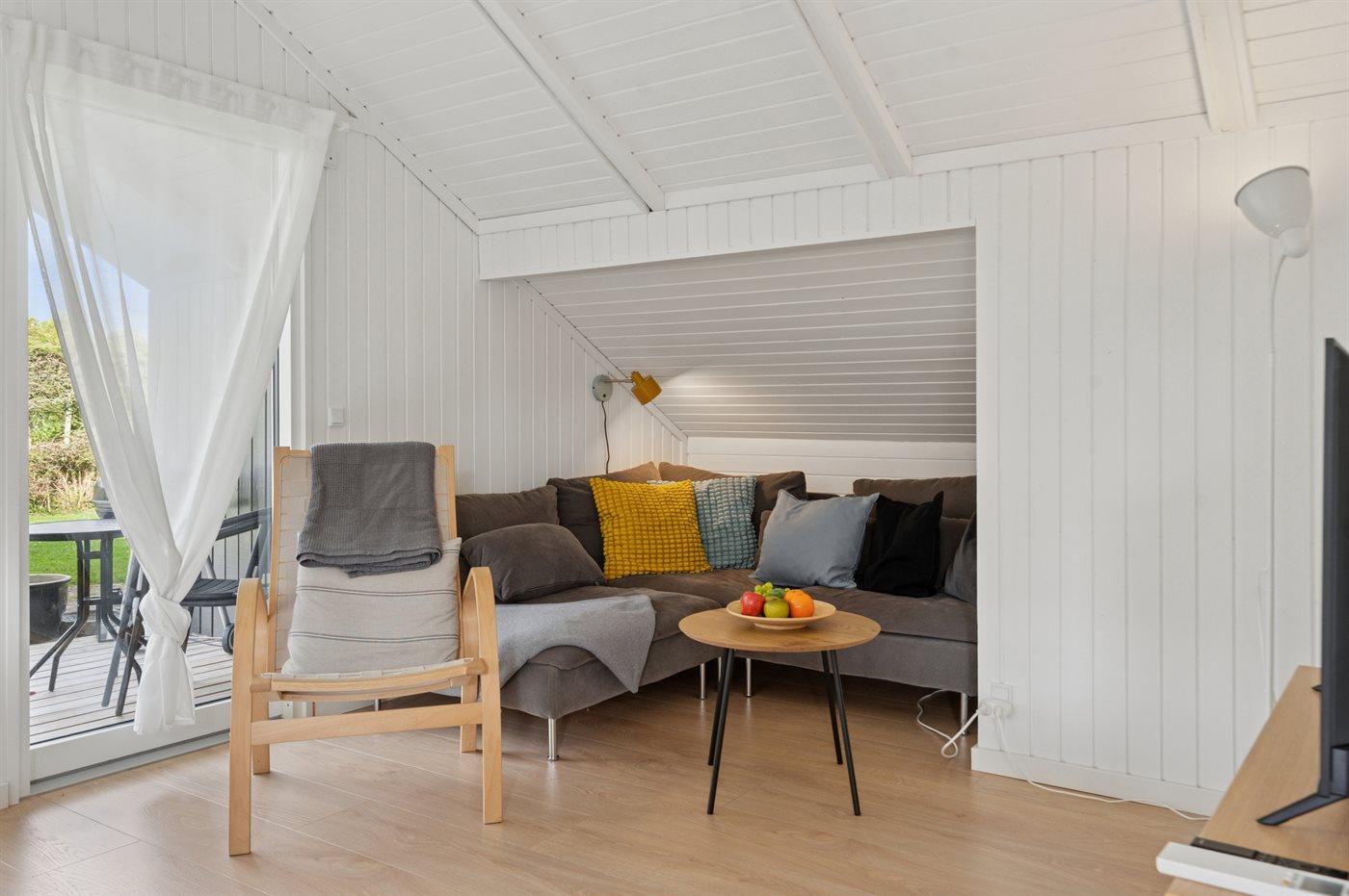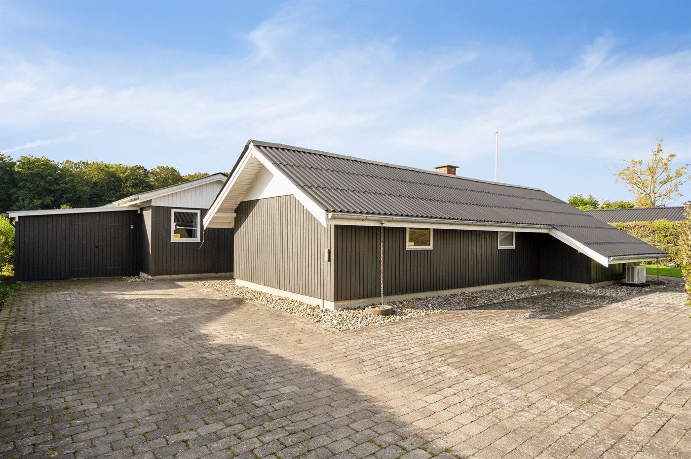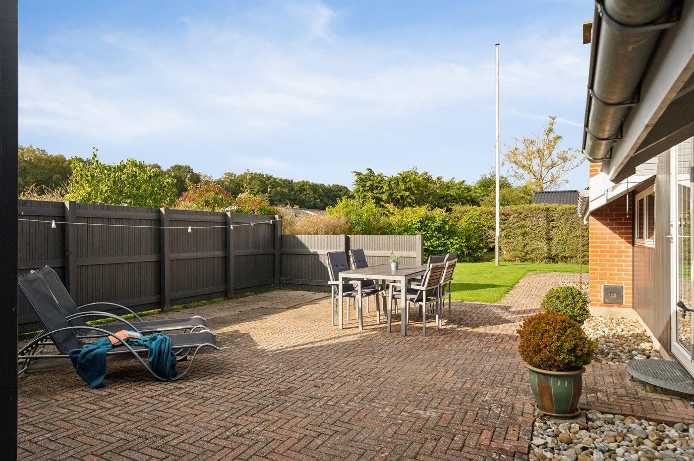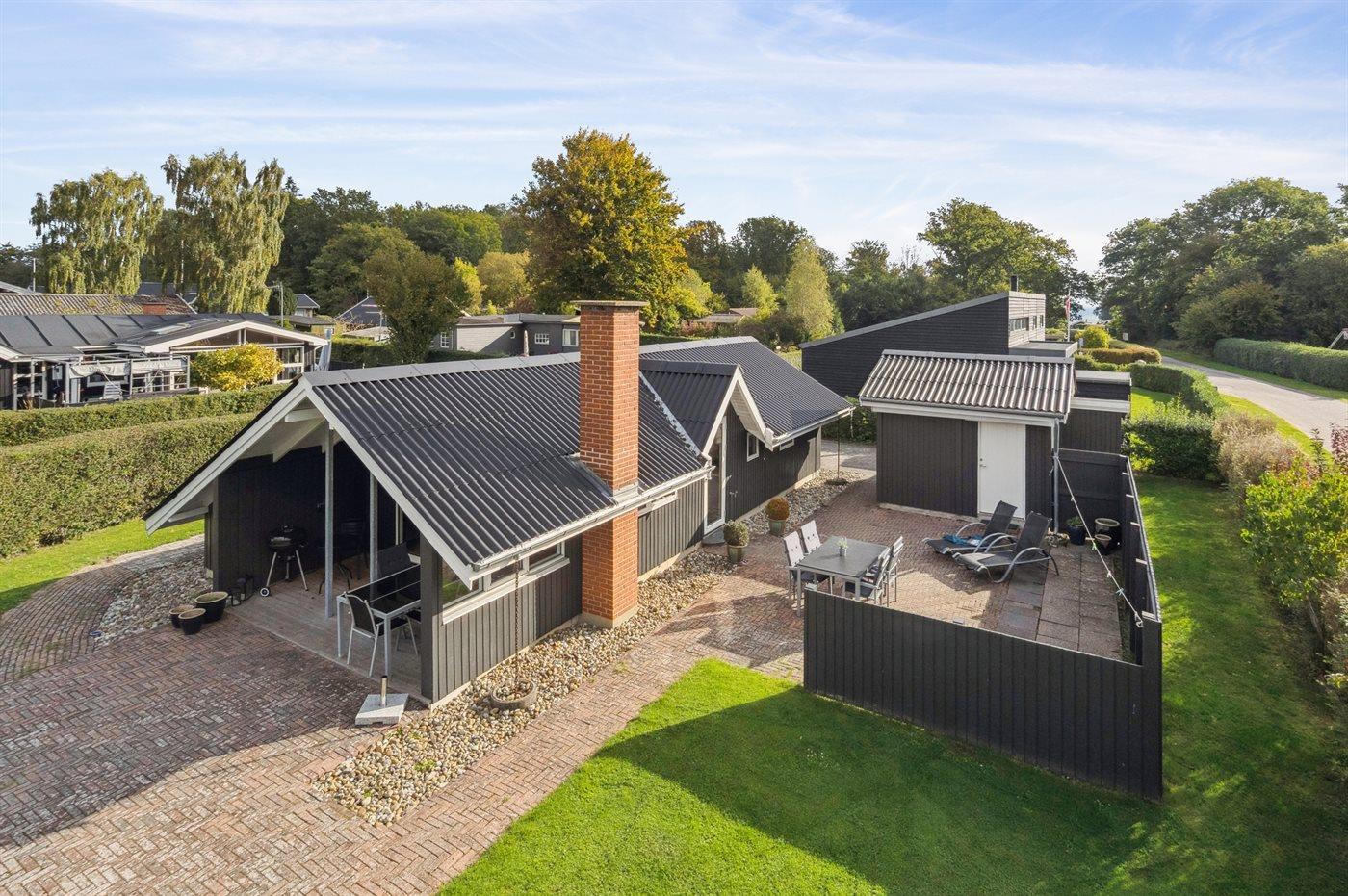 Sommerhuset er beliggende på en dejlig grund og med en overskuelig have. Der findes et dejligt, delvist overdækket terrasseareal - hvor det ofte er muligt at finde et hjørne i læ for vinden, og hvor du kan nyde solen og sidde med et glas vin eller en kop kaffe og slappe af i de fredelige og naturskønne omgivelser.