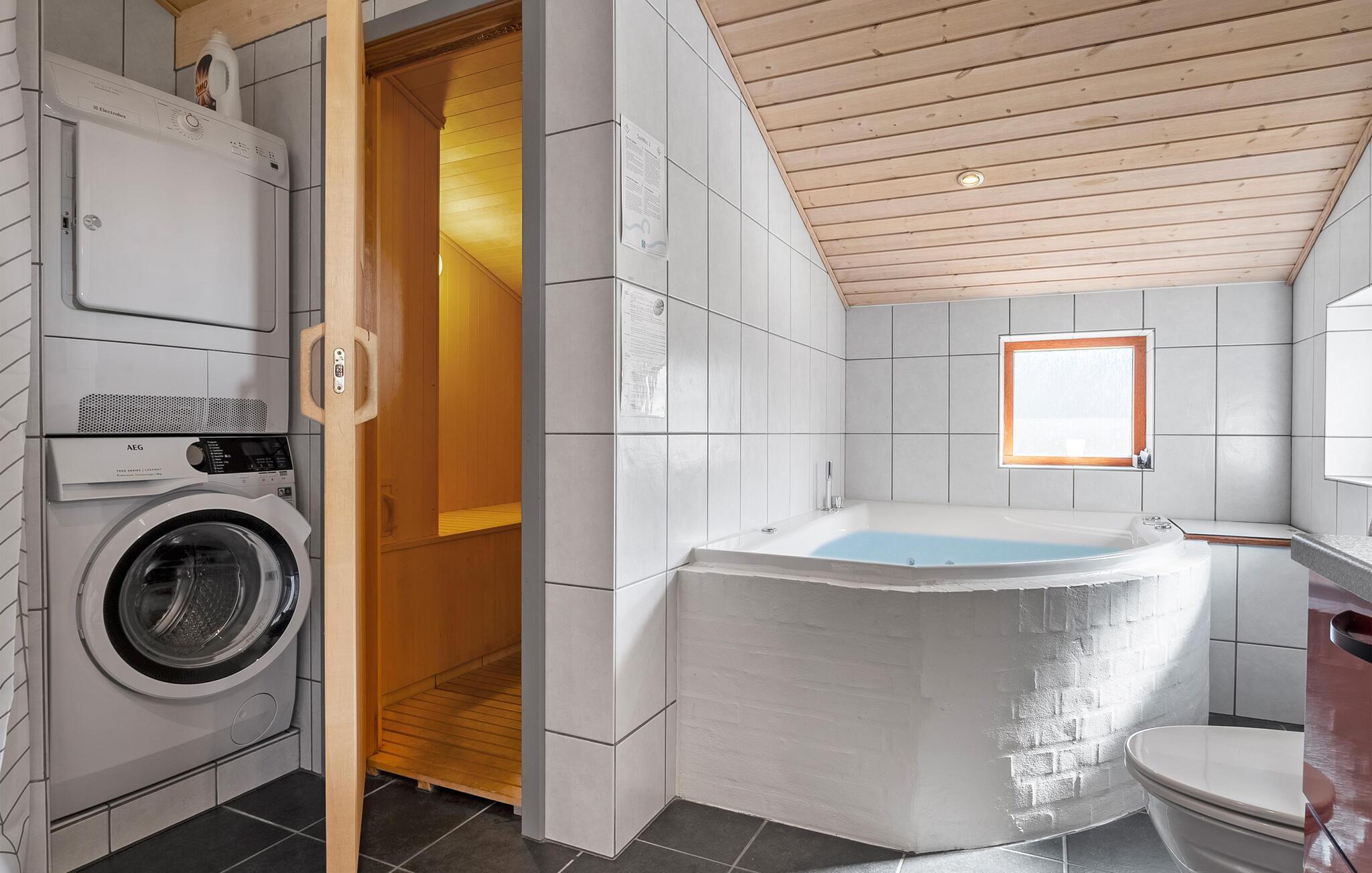 Glæd jer til den hyggelige opholdsstue med højt til loftet i træ, store vinduespartier og en hyggelig atmosfære. Find jer godt til rette i sofaen eller nyd afslappende timer foran brændeovnen. Spil kort, se en film eller bliv inspireret af udsigten til det grønne. Tilbered måltiderne i det moderne køkken og samles ved det lange spisebord til morgenmad, middag eller sociale sammenkomster. Wellness elskere vil få noget for pengene i spabadet og saunaen.