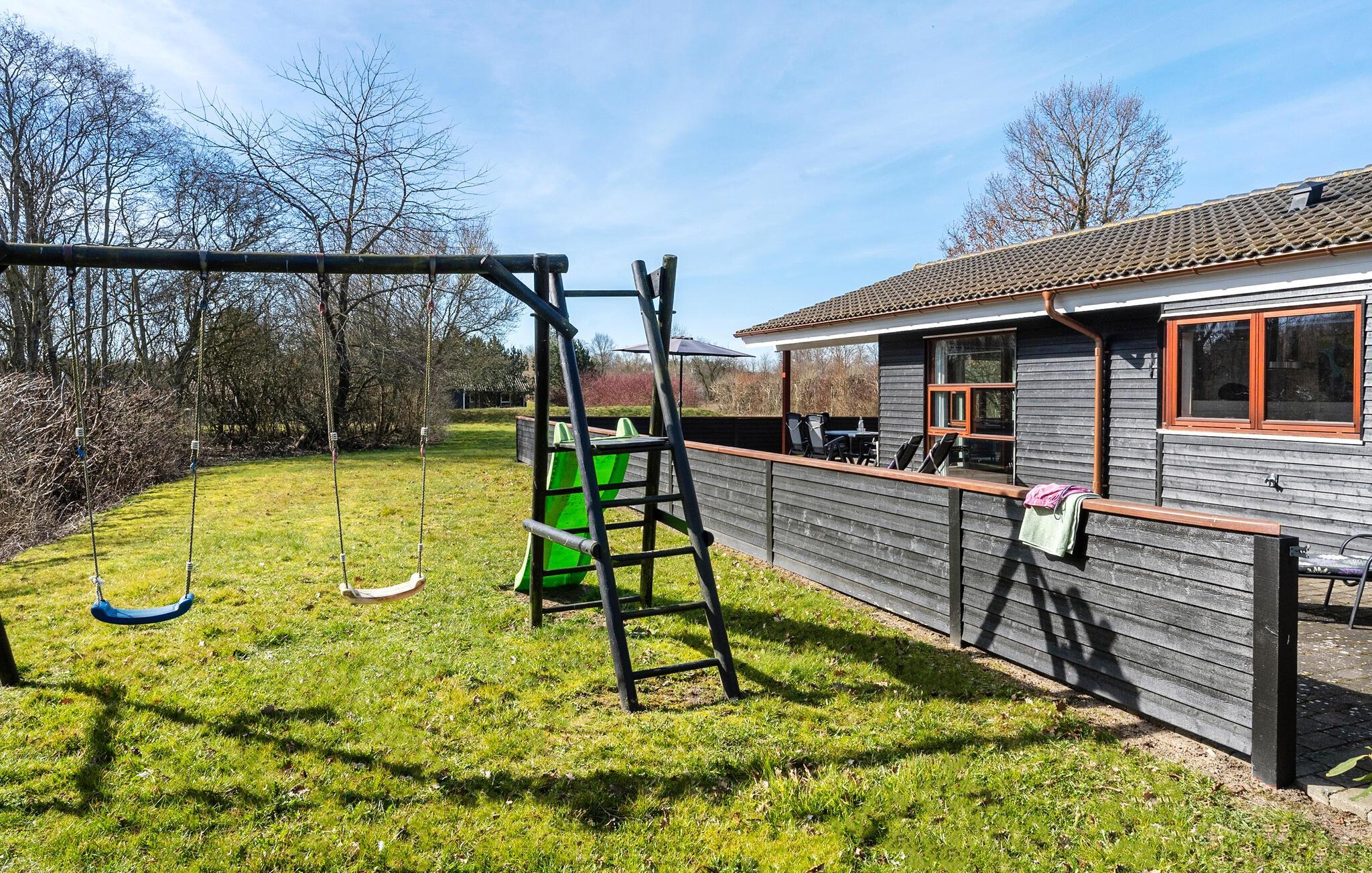 Brug det charmerende terrasseområde til en afslappet morgenmad eller en grillaften. Læn jer tilbage i de komfortable havestole eller slap af på liggestolene. børnene vil nyde gyngen og masser af plads til at lege i den beskyttede have. Den direkte adgang fra stuen til det fri skaber en behagelig feriefølelse.