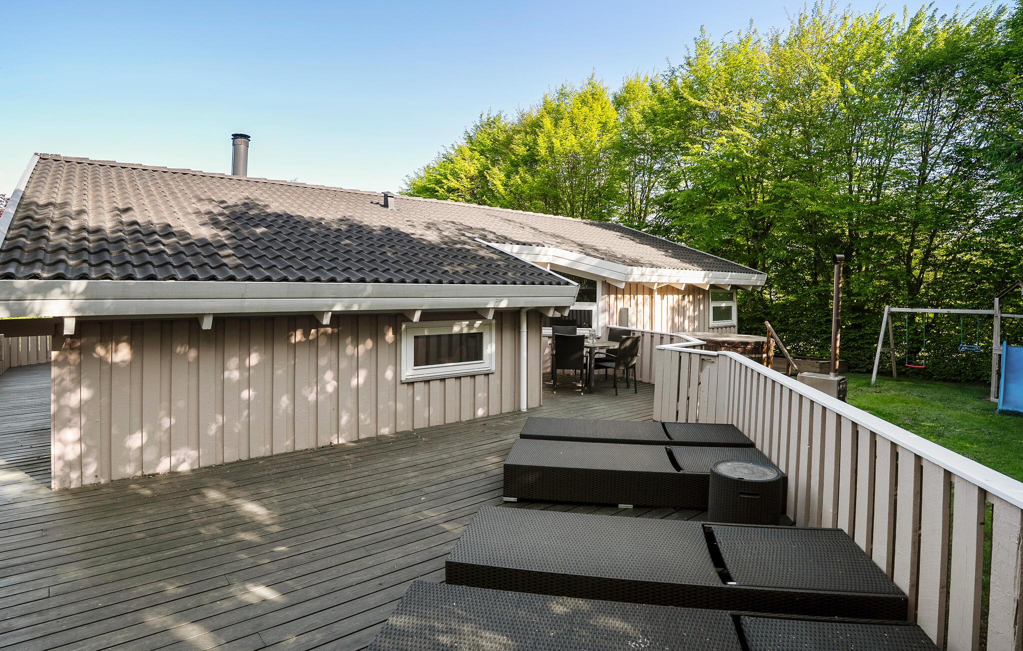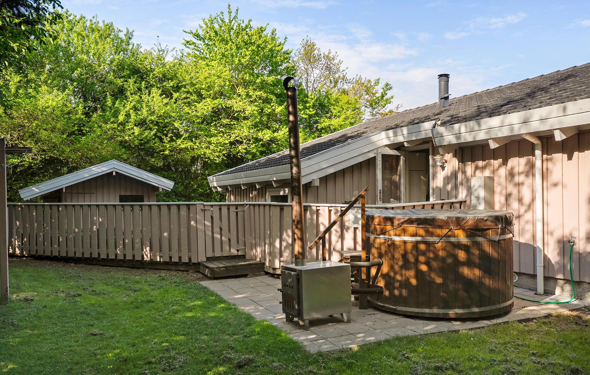 Hyggeligt træhus i Pøt Strandby med sauna, vildmarksbad og smuk udsigt over grønne områder.