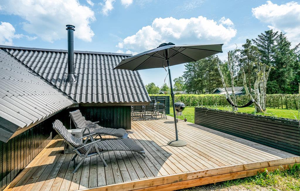 Rummeligt feriehus i Juelsminde med moderne faciliteter, brændeovn og stor terrasse nær strand og natur.