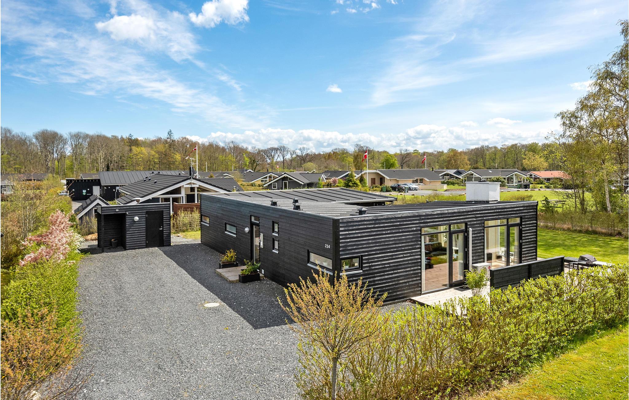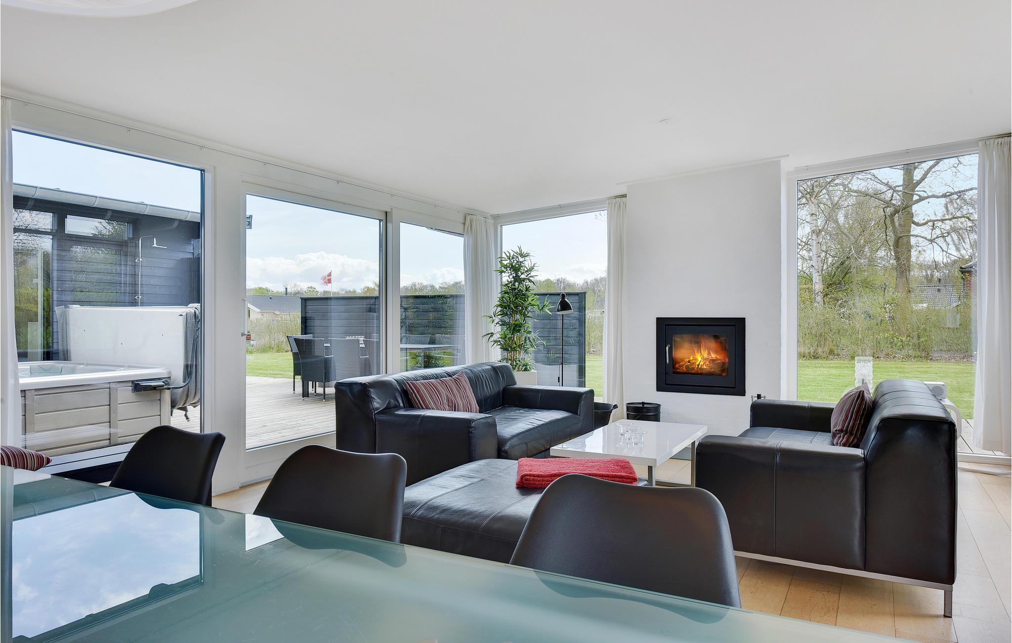 Virkelig dejligt og meget velindrettet feriehus. Der er brugt kvalitetsbyggematerialer over alt i huset. Husets arkitektur med den flotte u-form vil, når vejret tillader det, gøre at inde og ude smelter sammen og det skønne terrasserum med stort udendørs spa mellem værelser og opholdsrum, vil blive feriens samlingssted. Der er døre til terrasserummet både fra stuen og de fleste værelser. De i alt fire soveværelser giver plads til hele familien, alle er indrettede med komfortable senge, to værelser med hver en dobbeltseng og de to øvrige med enkeltsenge. Der er tv både i opholdsstuen og i soveværelserne (et af dem med er et 43" Smart-tv med Airplay og Chromecast), hvis I skulle opleve en gråvejrsdag eller bare gerne vil hygge med film indendørs. Der er to lækre badeværelser, det ene med sauna. Lige ved huset ligger en mindre legeplads og et fælles græsareal, her er der rig mulighed for leg og boldspil for både børn og barnlige sjæle. På en kort spadseretur fra huset kommer I til stranden, der er en god badebro, som kan benyttes i sæsonen. Det er tilladt at færdes frit på langt det meste af stranden, så I har mulighed for at finde jeres eget helt ugenerte sted, hvis I har behov for ro og fred. Området byder på mange gode ferieoplevelser: Den charmerende Juelsminde by er en kort køretur væk, og måske har I medbragt cykler? Der er mange gode cykelruter både til motion eller en hyggelig familietur. Giv jer selv en god ferieoplevelse og tag den lille færge til Hjarnø eller måske en heldagsudflugt til Endelave i Kattegat. Der er mange muligheder for gode ferieoplevelser for hele familien, gode restauranter, kulturoplevelser, masser af muligheder for børnefamilier. Legoland og Givskud Løvepark ligger under 1 times biltur væk. Tag også en tur til Horsens og oplev det unikke fængselsmuseum eller en musikoplevelse. Horsens er desuden rig på specialforretninger og har et blomsterende kulturliv.