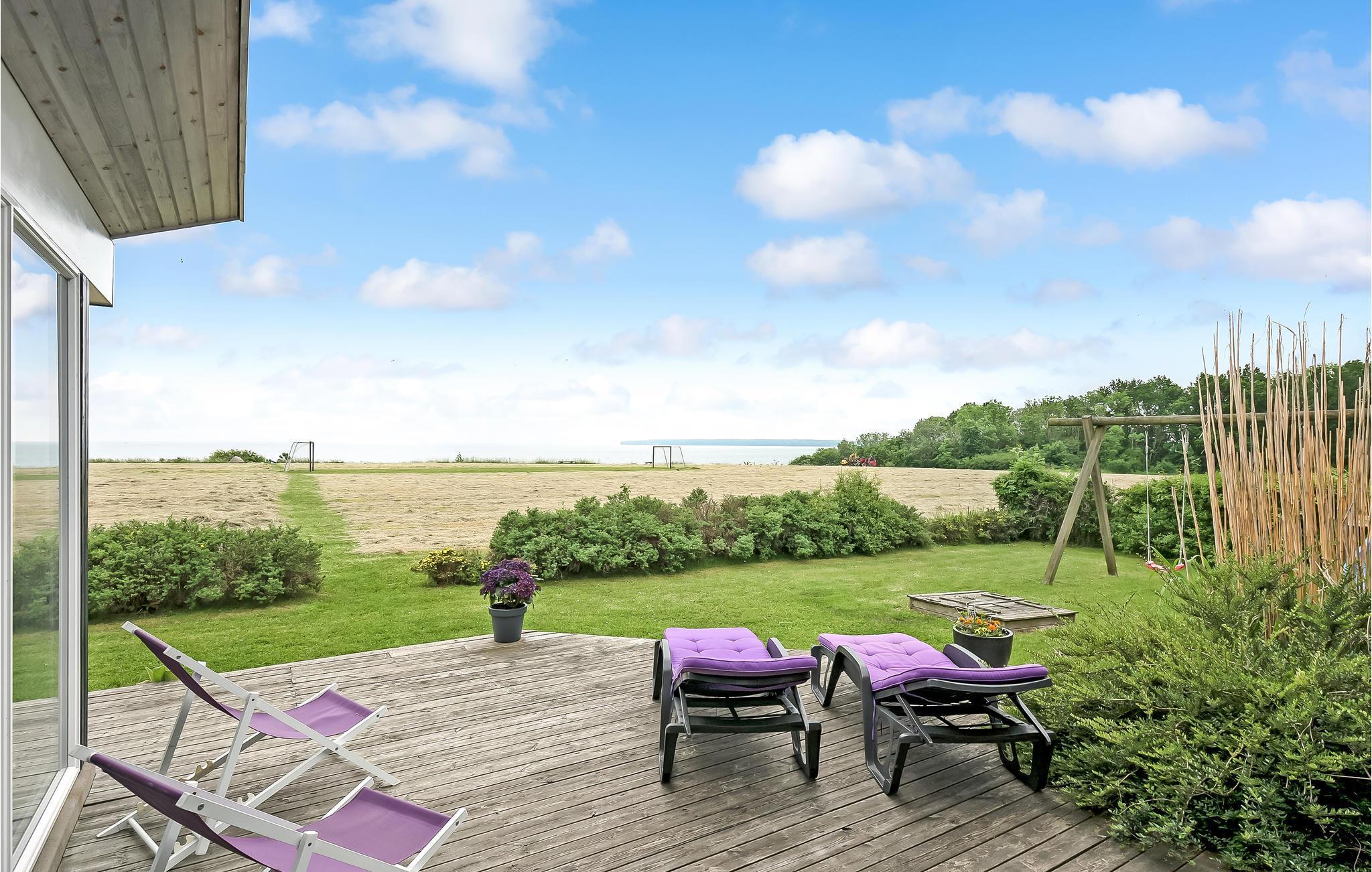 I første række ved Pøt Strand ligger dette dejlige sommerhus med et stort panoramaparti mod havet i både poolrum og stue. Her findes også en skøn, ugenert og delvis overdækket terrasse - også med havblik. Køkken-/stueområdet er lyst og venligt indrettet med loft til kip og er udstyret med en hyggelig brændeovn. Huset har to dejlige badeværelser og en sauna. Poolen inviterer til skønne svømmeture med efterfølgende afslapning i saunaen. Udendørs findes et legestativ og grunden er nabo til en stor plæne, der er ideel til drageflyvning, og hvor der er opstillet et par mål til boldspil.