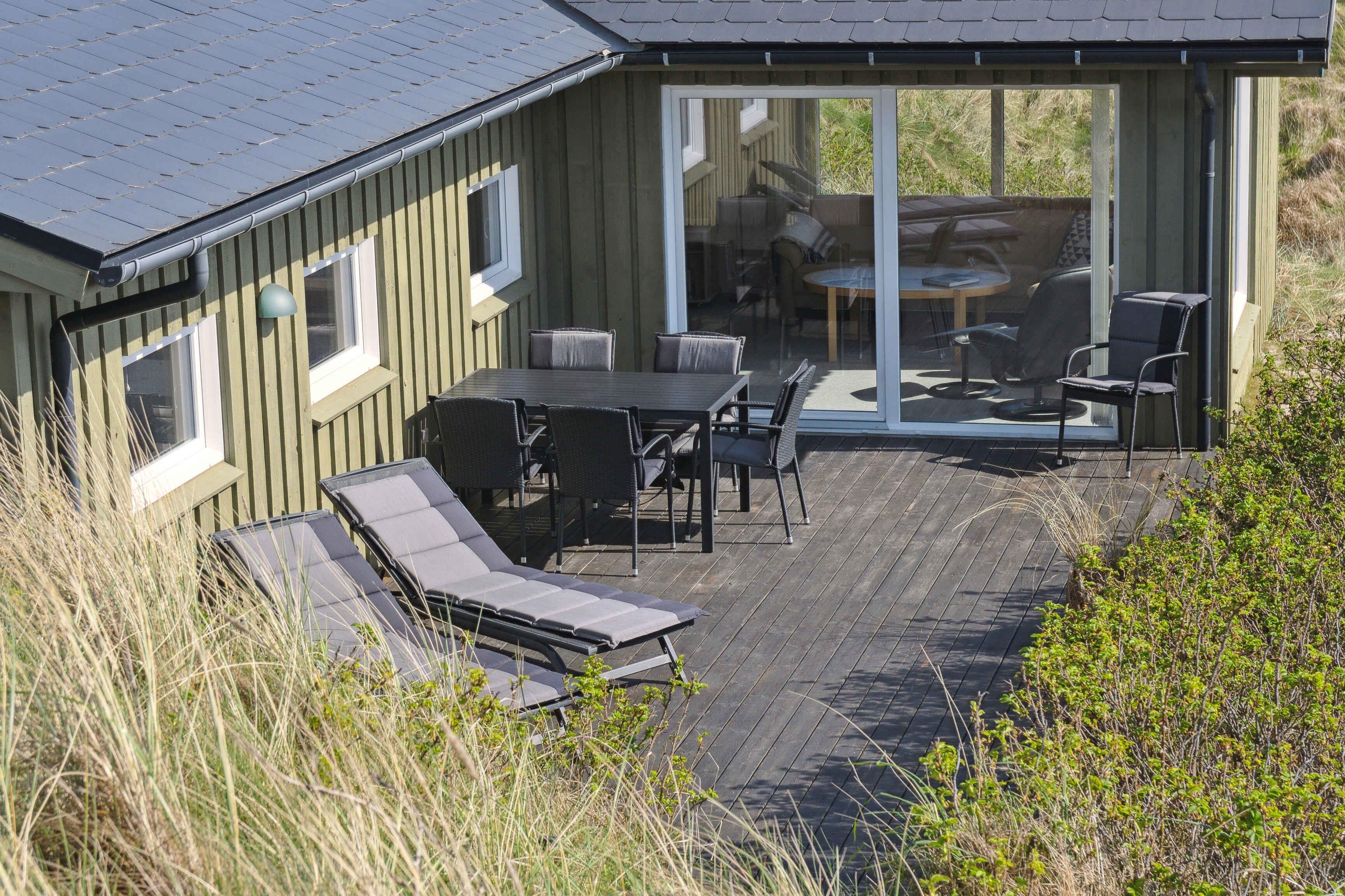 Moderne sommerhus fra 2016 med direkte adgang til Vesterhavet og panoramaudsigt fra privat klitgrund.