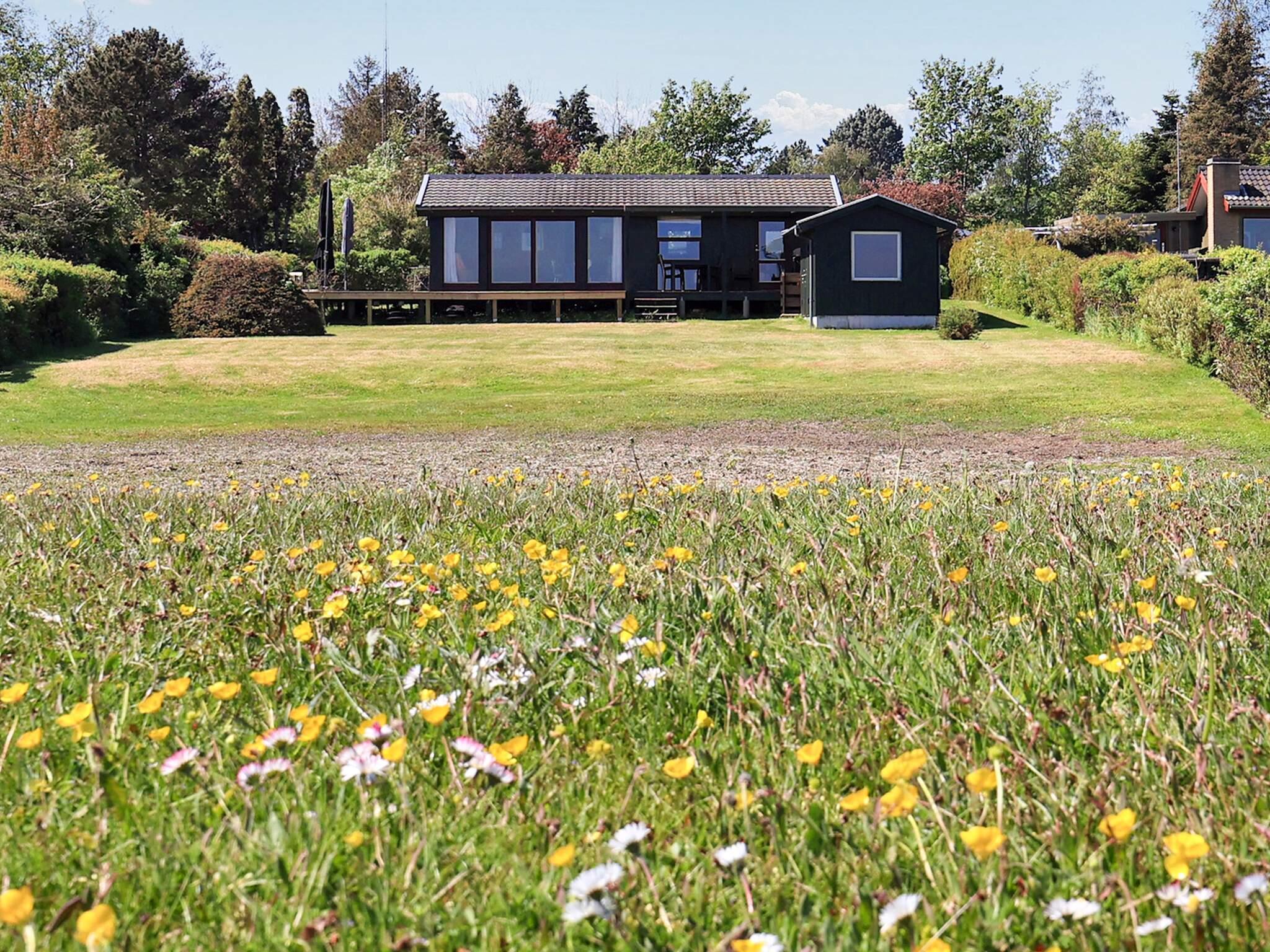 Fra enden af haven går I direkte ud på et stort græsareal og igen videre ud i sandet og ud i det børnevenlige vand.