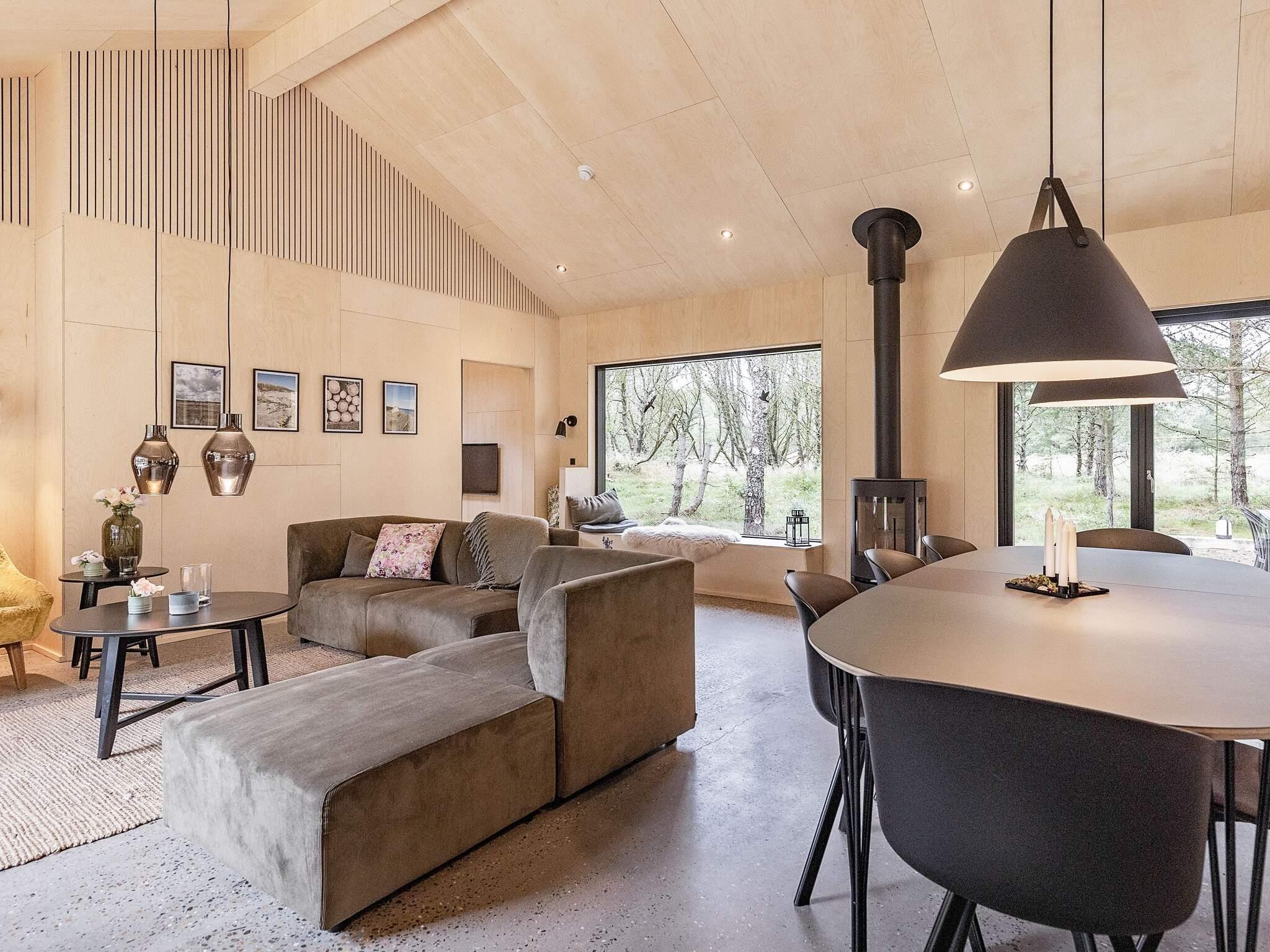 alt hvad du behøver. Det rummelige køkken er åbent til spise- og opholdsstuen, som er indrettet med komfortable møbler.