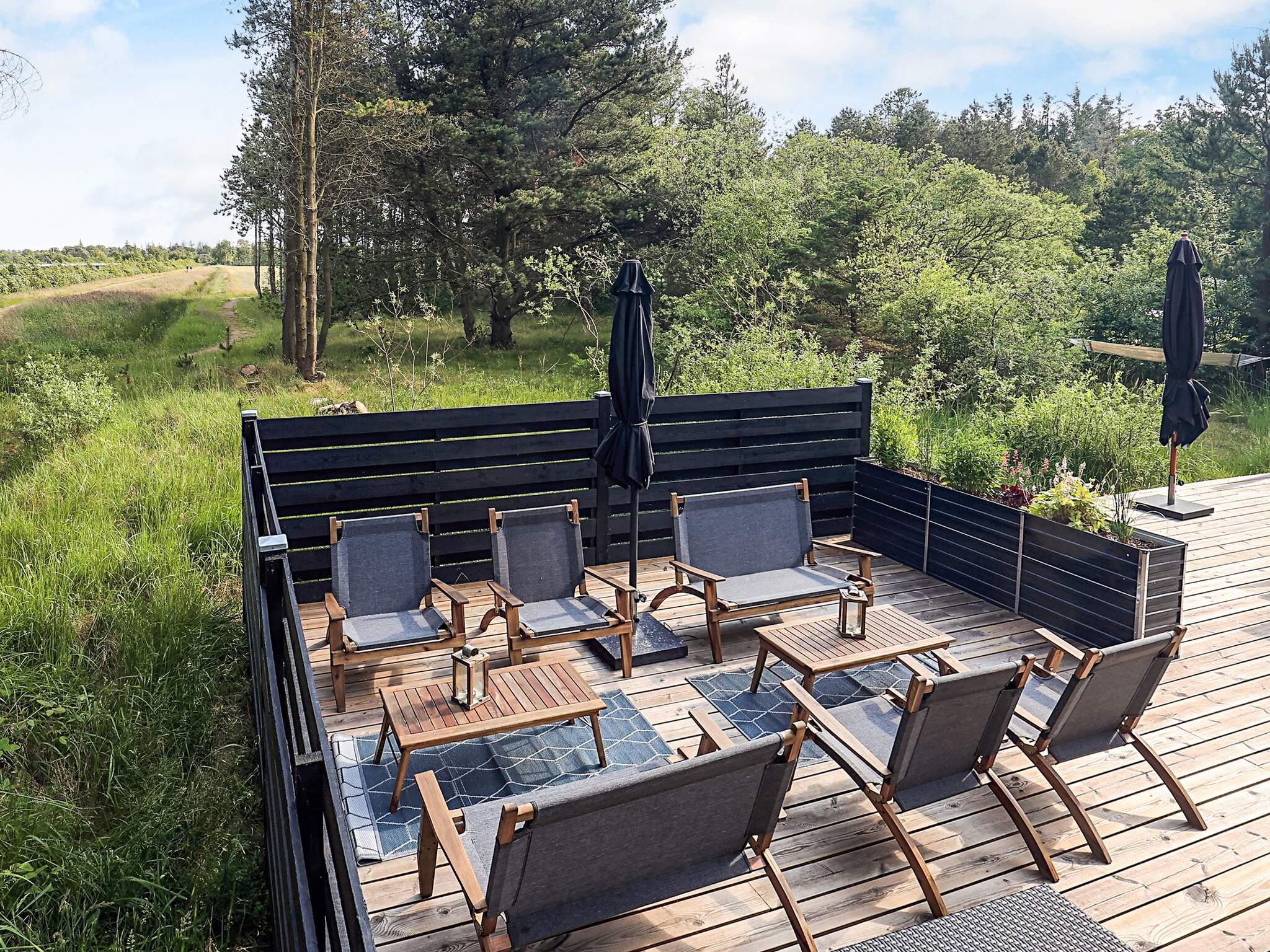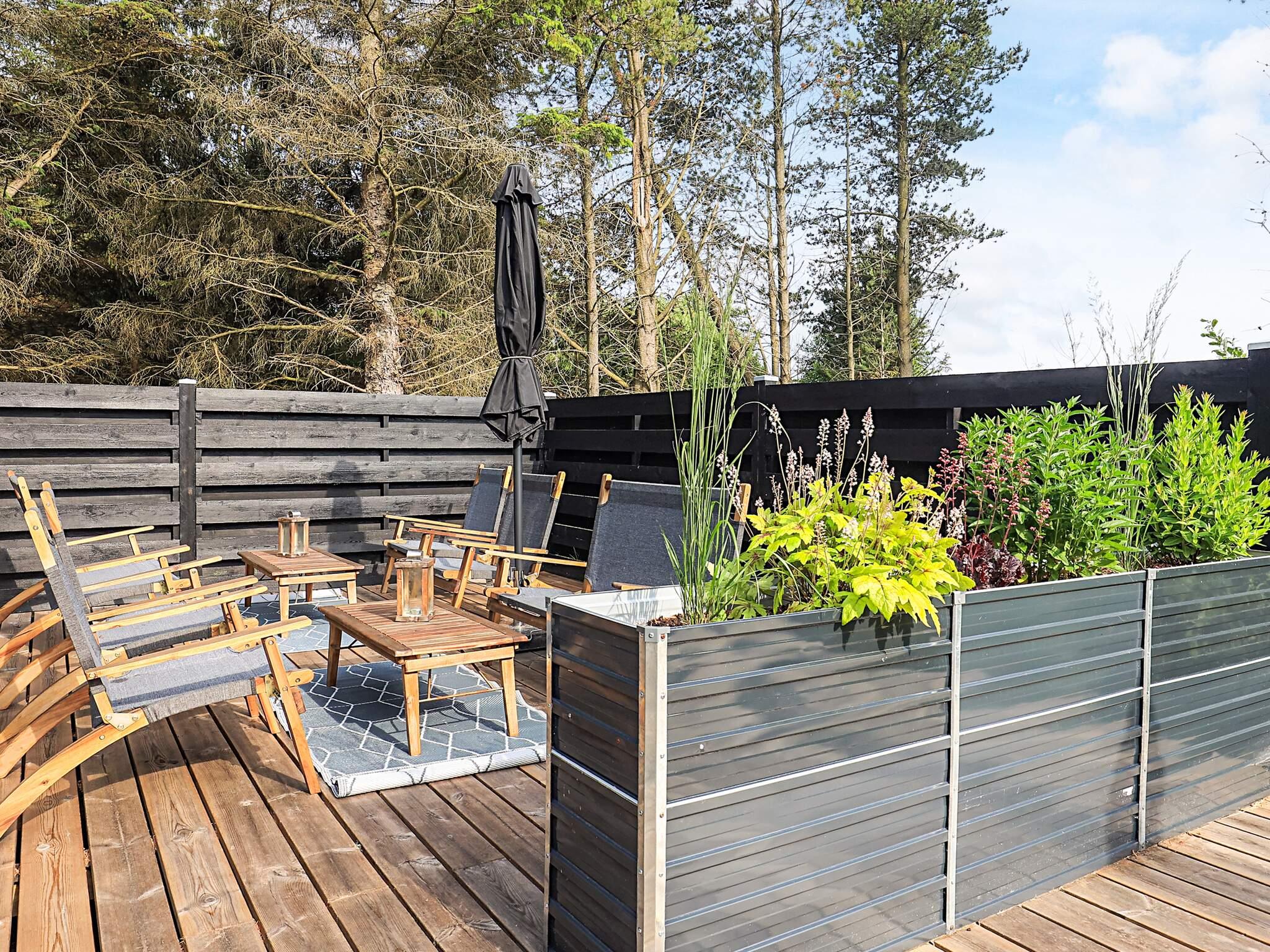 Terrassen omkring huset er helt fantastisk, så du kan nyde din ferie udendørs. De mange afsondrede kroge er perfekte til alt fra solbadning og afslapning til grillning på en varm sommeraften. Terrasserne omkring huset byder på masser af læ, skygge og mulighed for at bevæge sig rundt med solen. Om sommeren kan du også nyde en dejlig udendørs bruser i haven til lyden af ??fuglesang.