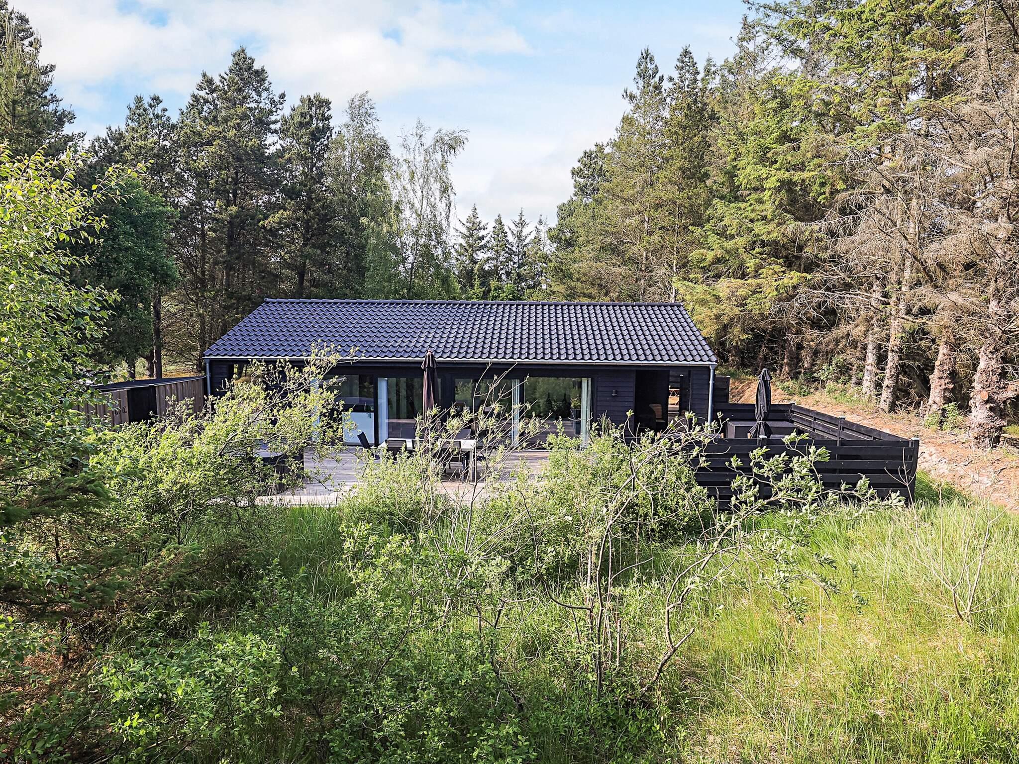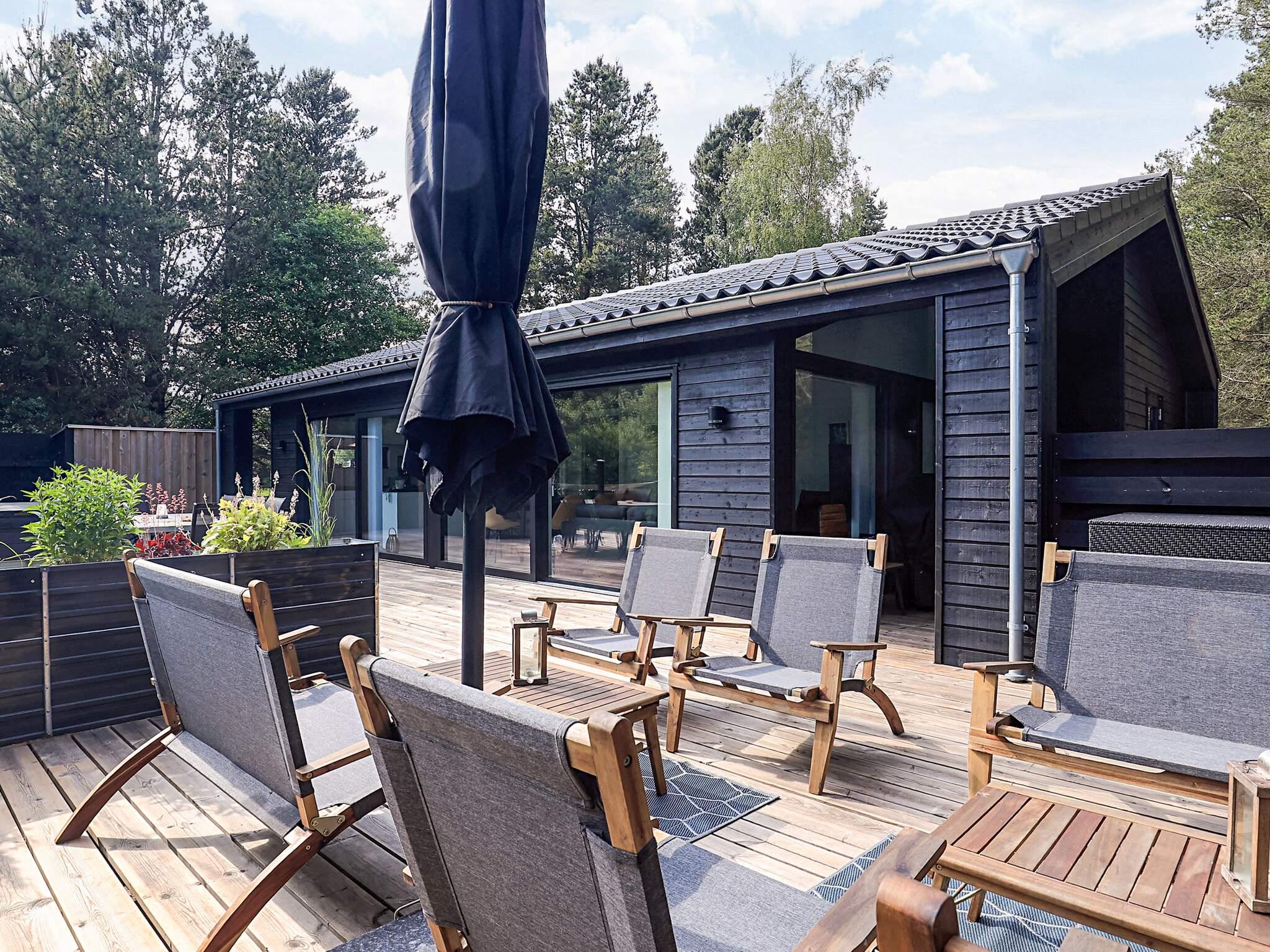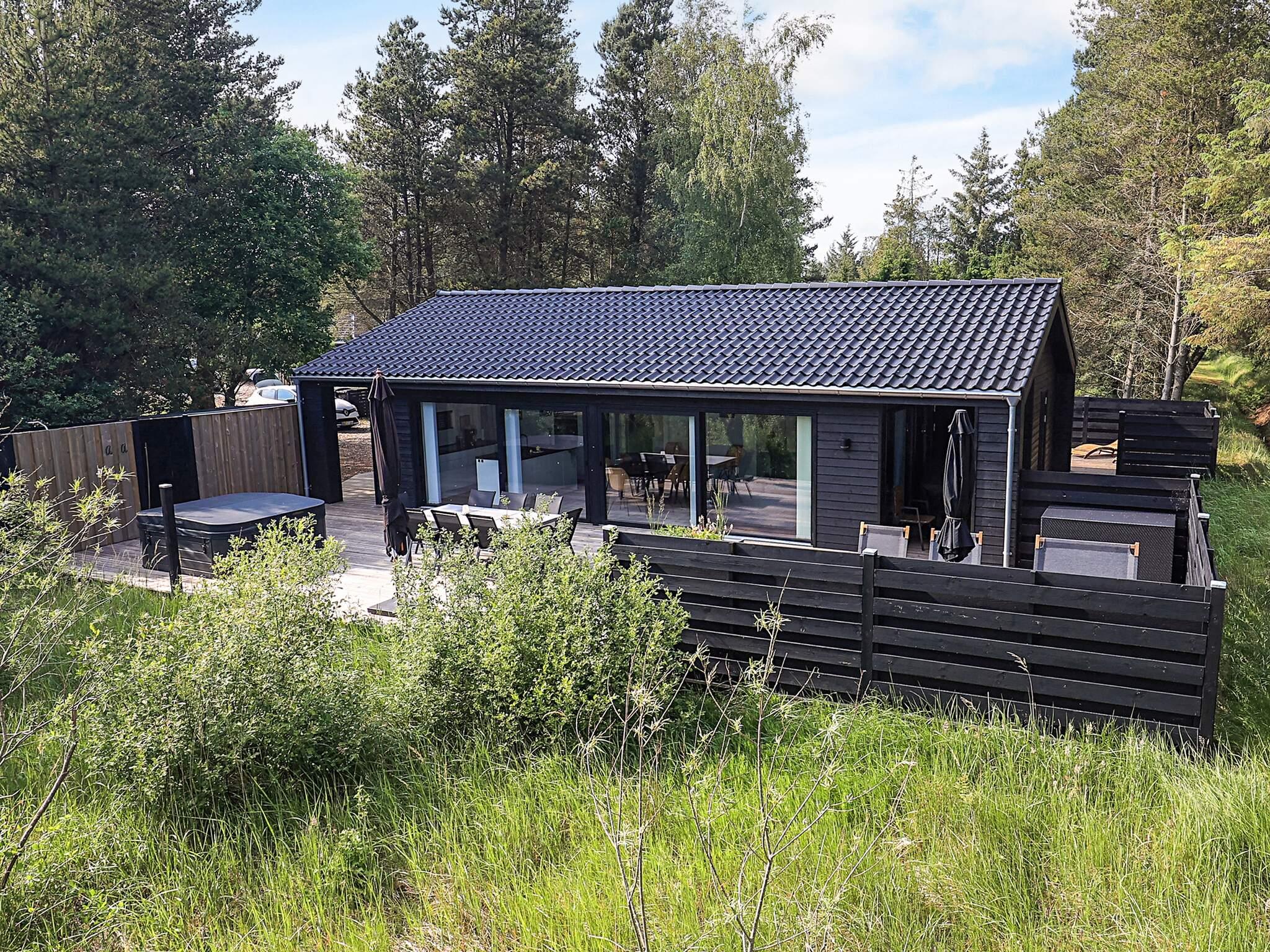 Moderne sommerhus med udendørs spabad og skøn beliggenhed i udkanten af ??Bunken for enden af ??en blind vej, i et roligt, grønt og naturrigt sommerhusområde.