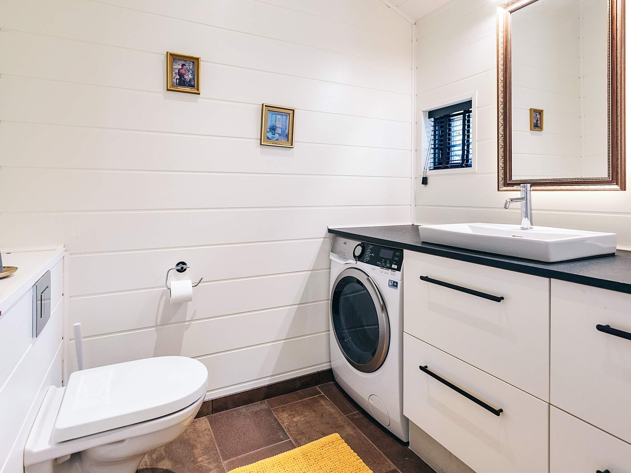 Bad/wc: Vaskemask., tørretumbler, wc, håndvask, bruser