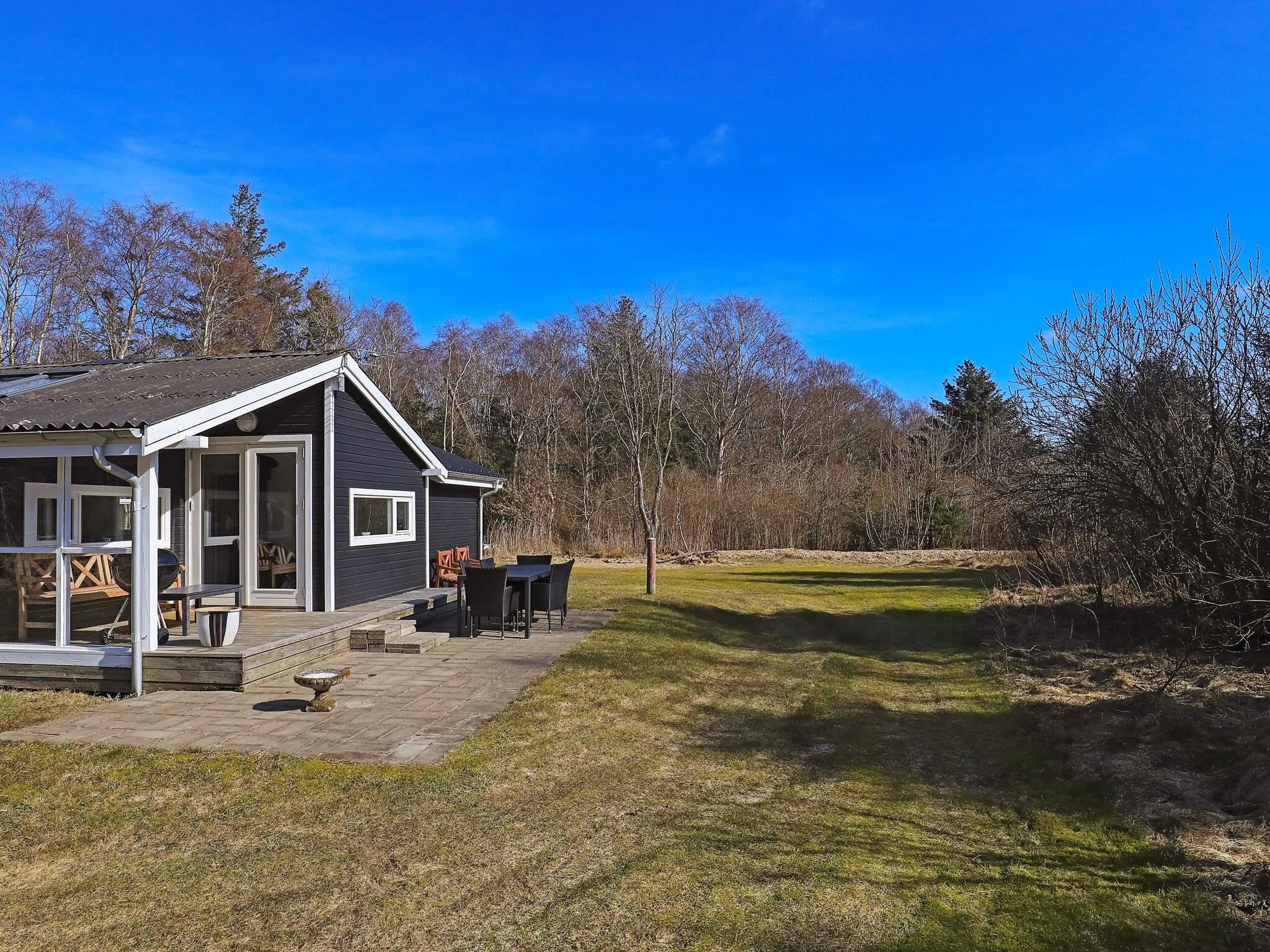 Sommerhus beliggende i naturskønne og rolige omgivelser i Råbjerg/Bunken. Ikke langt fra Råbjerg Mile. Huset er yderst velholdt og godt indrettet med tre gode soveværelser, badeværelse med bruseniche og køkken/alrum i forbindelse til stuen med brændeovn. Bryggers med vaskemaskine. Fra alrummet er der udgang til sydvendt terrasse, hvor der er mulighed for at forlænge sommeraftnerne og hygge ved grillen. På den store grund er der gode muligheder for at børnene kan boltre sig med leg og spil. Der er kun 1500 meter til nærmest strand. Sommerhuset er beliggende midt mellem Vesterhavet og Kattegat, på Skagen Odde, og med kun 4 minutters gang gennem stier fra Golfbanen Hvideklit. Der er kun 8 km til Vesterhavet af den lille landevej mod Skiveren. Her er der brede sandstrande og man må køre med bil på stranden, dog på eget ansvar. I østlig retning er der 1200 meter til det blide Kattegat, med lavt vand og ikke helt så vilde bølger, som mod vest. Der kører tog fra Bunken station til Skagen og Frederikshavn. Udlejes ikke til ungdomsgrupper.