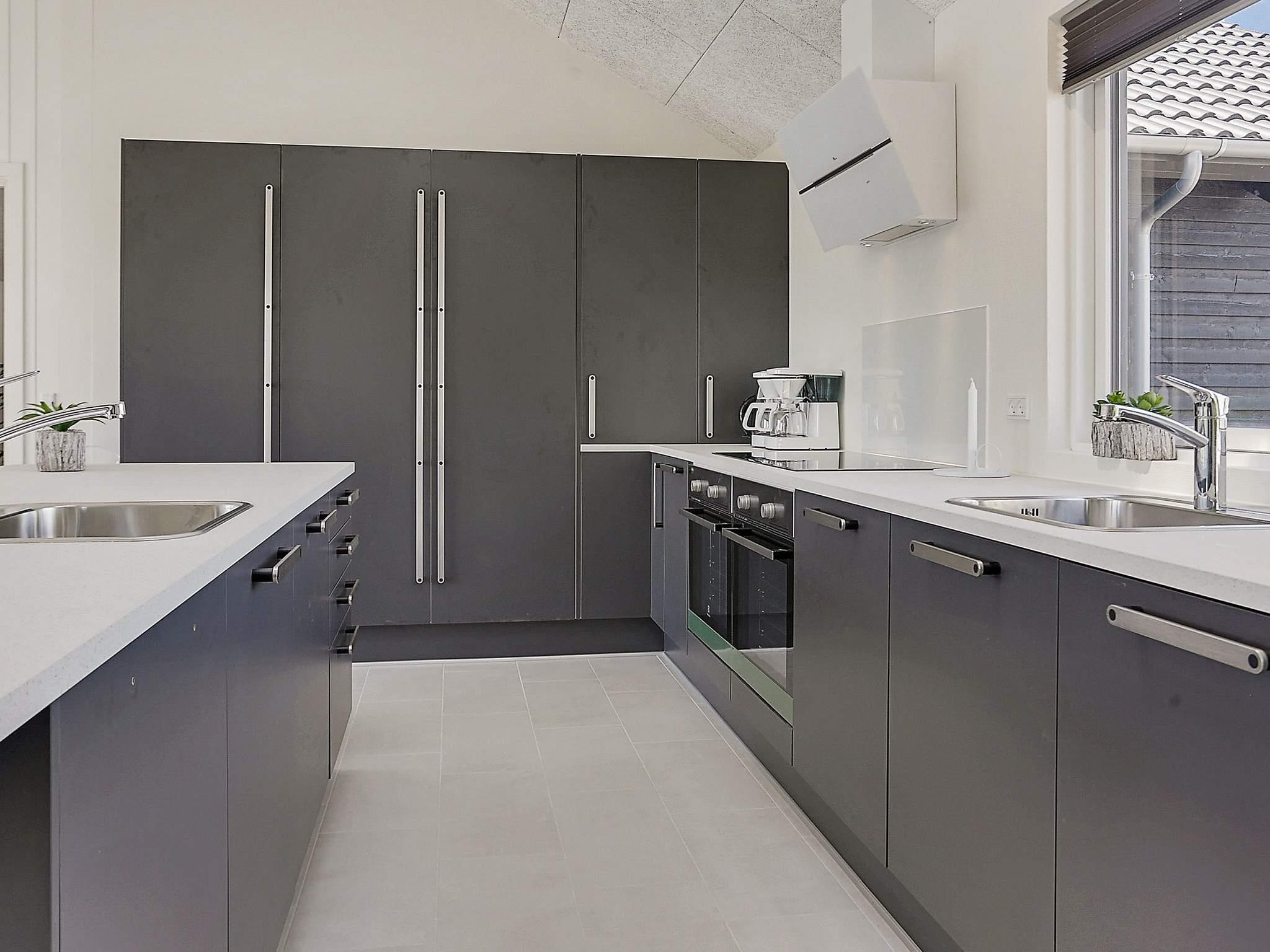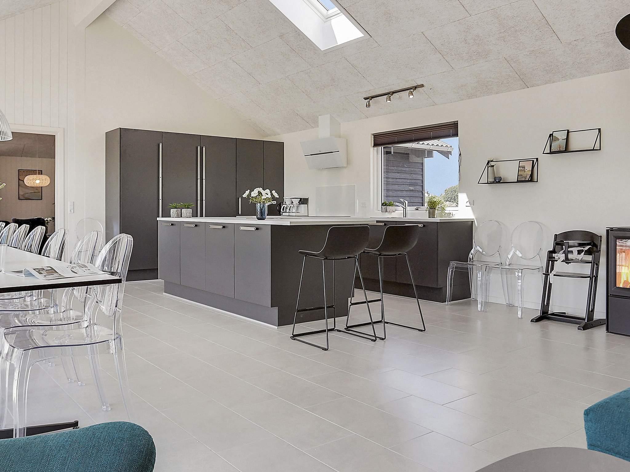 Køkkenet er praktisk indrettet med køkken-ø, og dobbelt opvaskemaskine, vask, ovn, køleskab og kogeplader, så det er nemt at kokkerere til alle feriens måltider.