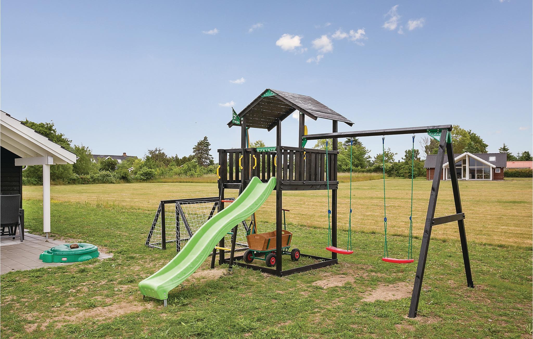 Glæd jer til at tilbringe de lune dage på den store terrasse med havemøbler, grill og masser af plads til at solbade. Børnene kan se frem til et herligt udvalg af legestativer, lige fra gynger til rutsjebane og fodboldmål. Der er også en lille sandkasse.
