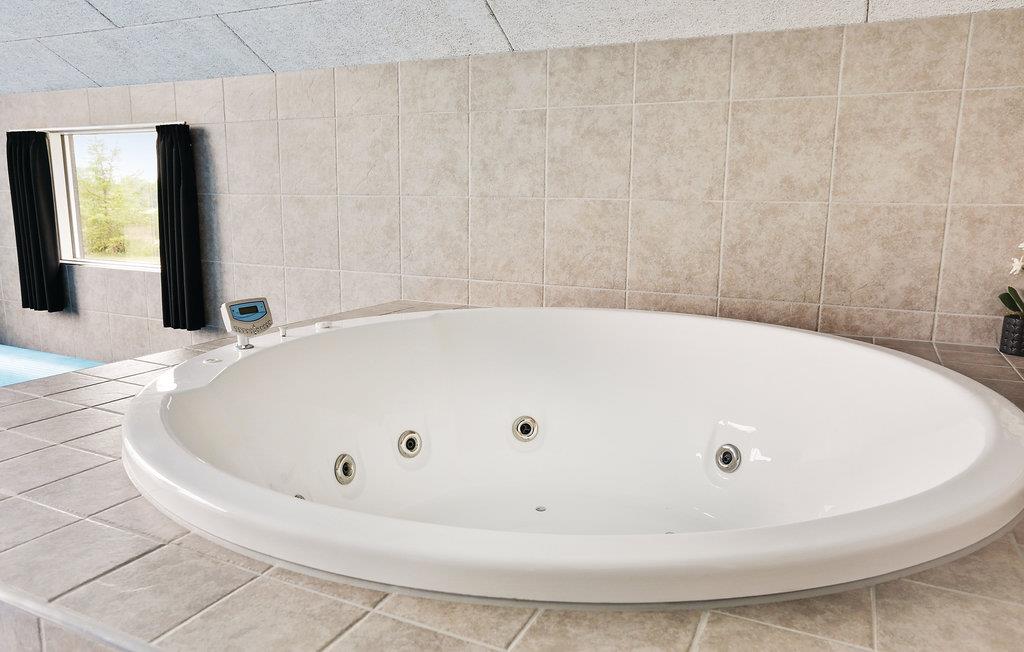 Rummeligt feriehus med pool, sauna og legestativer tæt på børnevenlig sandstrand i Råbylille.