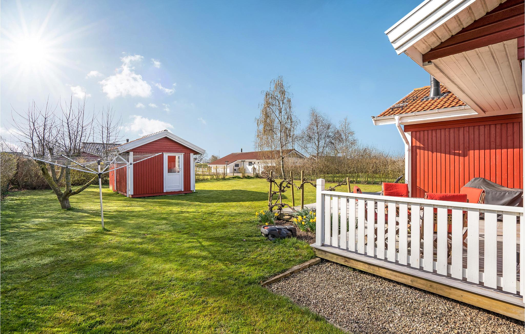 Huset ligger på en stor naturgrund med masser af plads til, at børn kan lege og boltre sig. Til huset hører en træterrasse med både åbne og overdækkede sektioner, så I kan nyde solen eller skyggen efter behag. Spis morgenmad herude, læs en god bog og hold hyggelige grillaftener. Der er også liggestole til solbadning, samt en bålplads i haven, hvis I fx skulle have lyst til at lave snobrød eller riste skumfiduser.