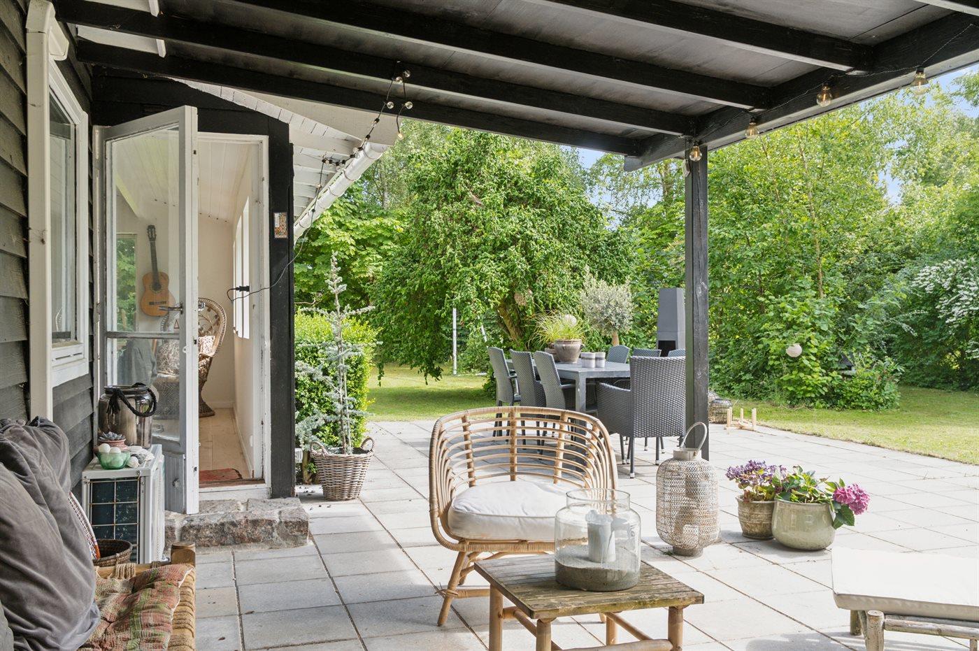 Ferieboligen er beliggende på en 1265 m² stor havegrund. Der er 1650 m til havet. Nærmeste forretning er beliggende i en afstand af 1000 m. Til ferieboligen hører åbent terrasseareal. Desuden er der overdækket terrasse. Ligeledes er der adgang til udestue. Trampolin. Bålsted. På lune aftener sørger en udendørs pejs for hyggelig stemning. Grill til rådighed. Parkering ved ferieboligen.