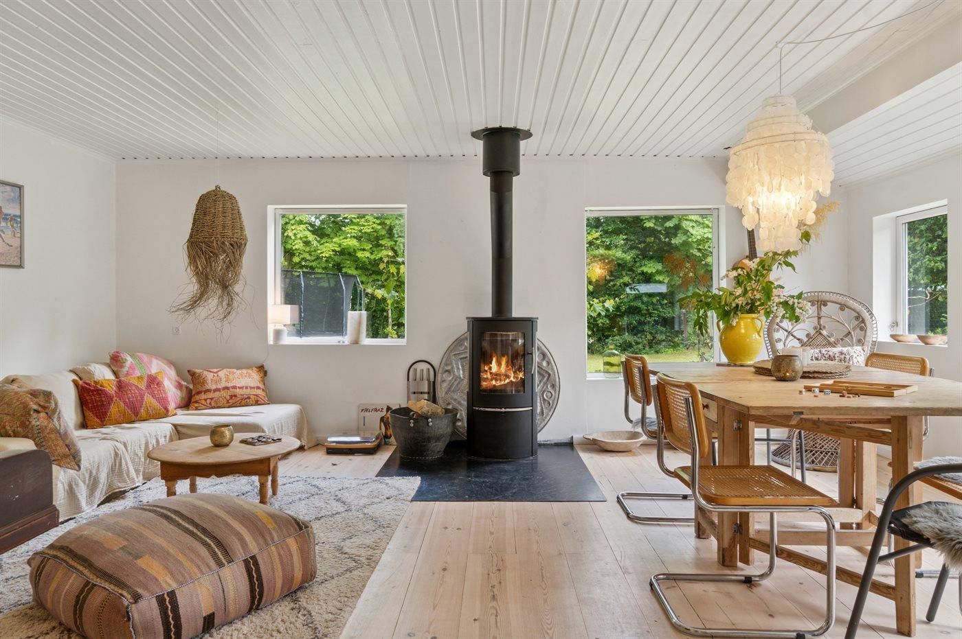 Sommerhuset er både familievenligt og hyggeligt med en stor have, hvor børnene kan boltre sig på trampolinen eller spille fodbold ved målet. Indenfor kan I nyde afslappende aftener foran brændeovnen, mens udestuen byder på underholdning med bordtennis. Udendørs findes der både grill og solrige terrasser, som indbyder til hyggelige måltider og afslapning. Huset ligger desuden i kort afstand til strand og smuk natur, hvilket gør det ideelt til både aktive og afslappende feriedage.