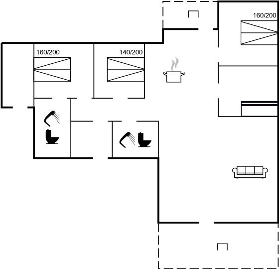 Der er i alt 4 soveværelser. Sovepladserne fordeler sig på: 6 sovepladser i dobbeltsenge. 2 sovepladser i køjeseng.