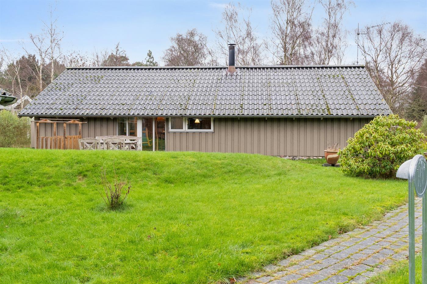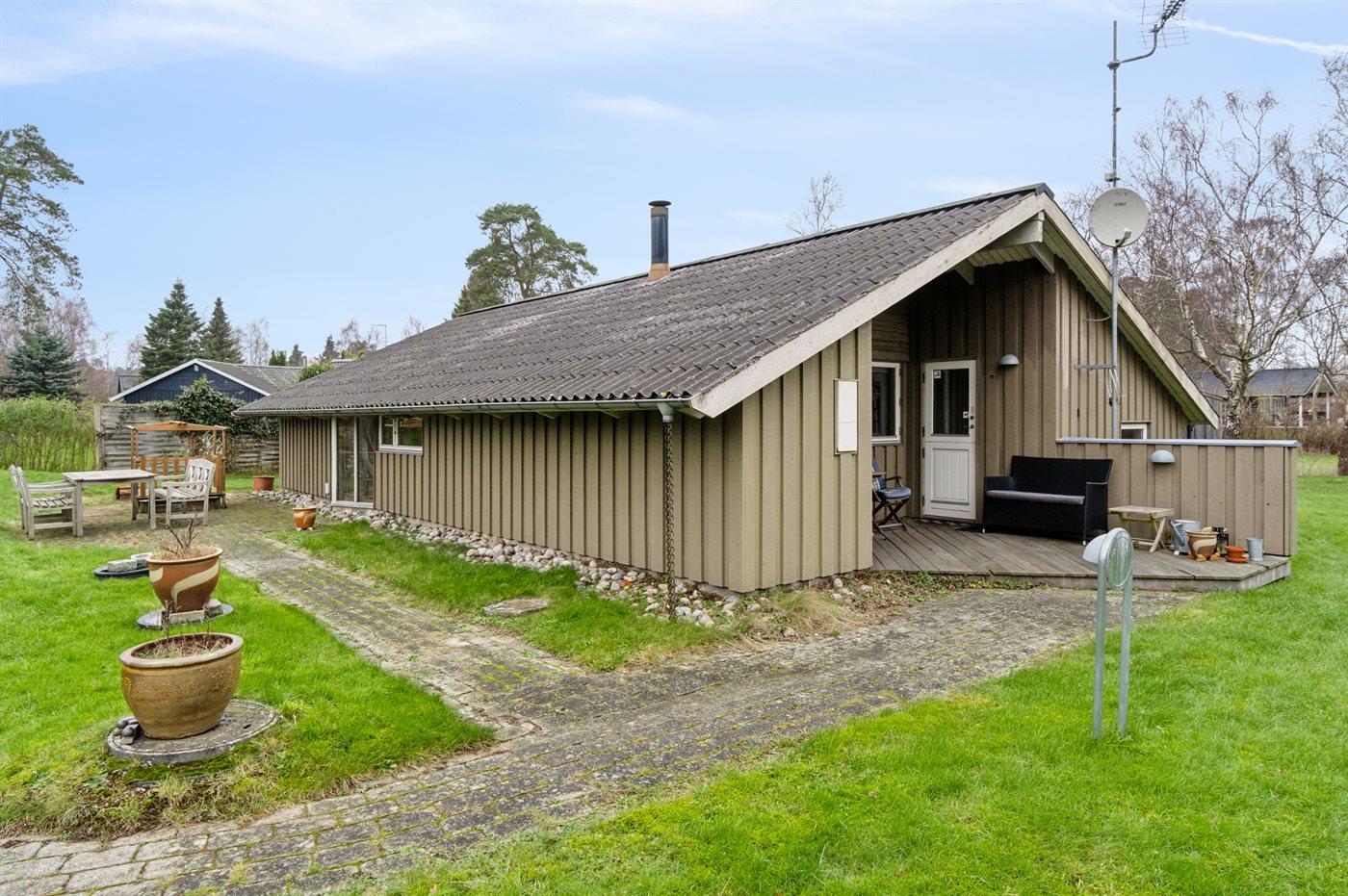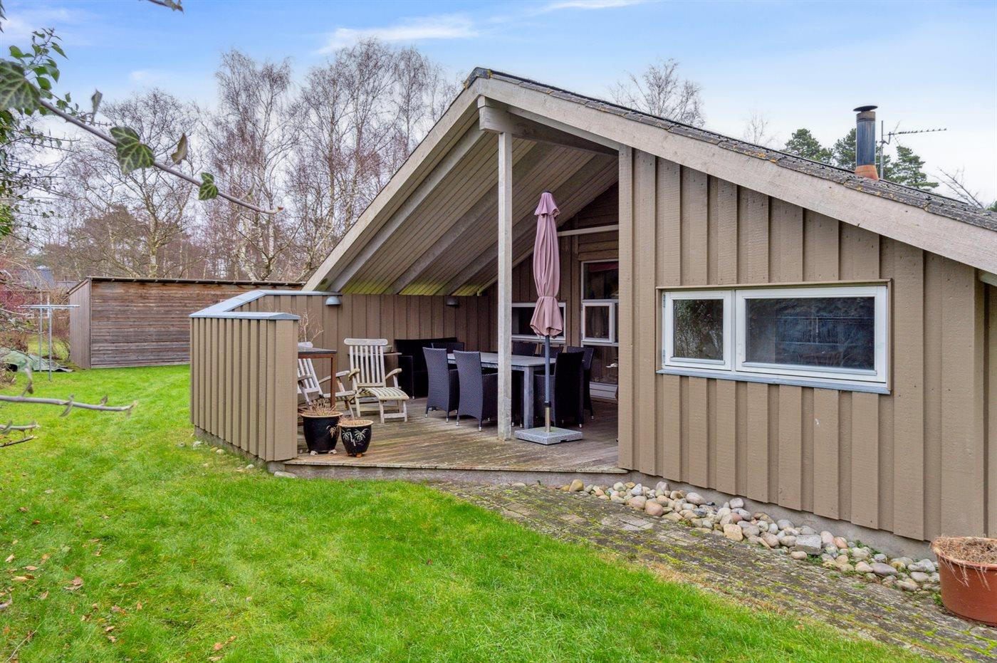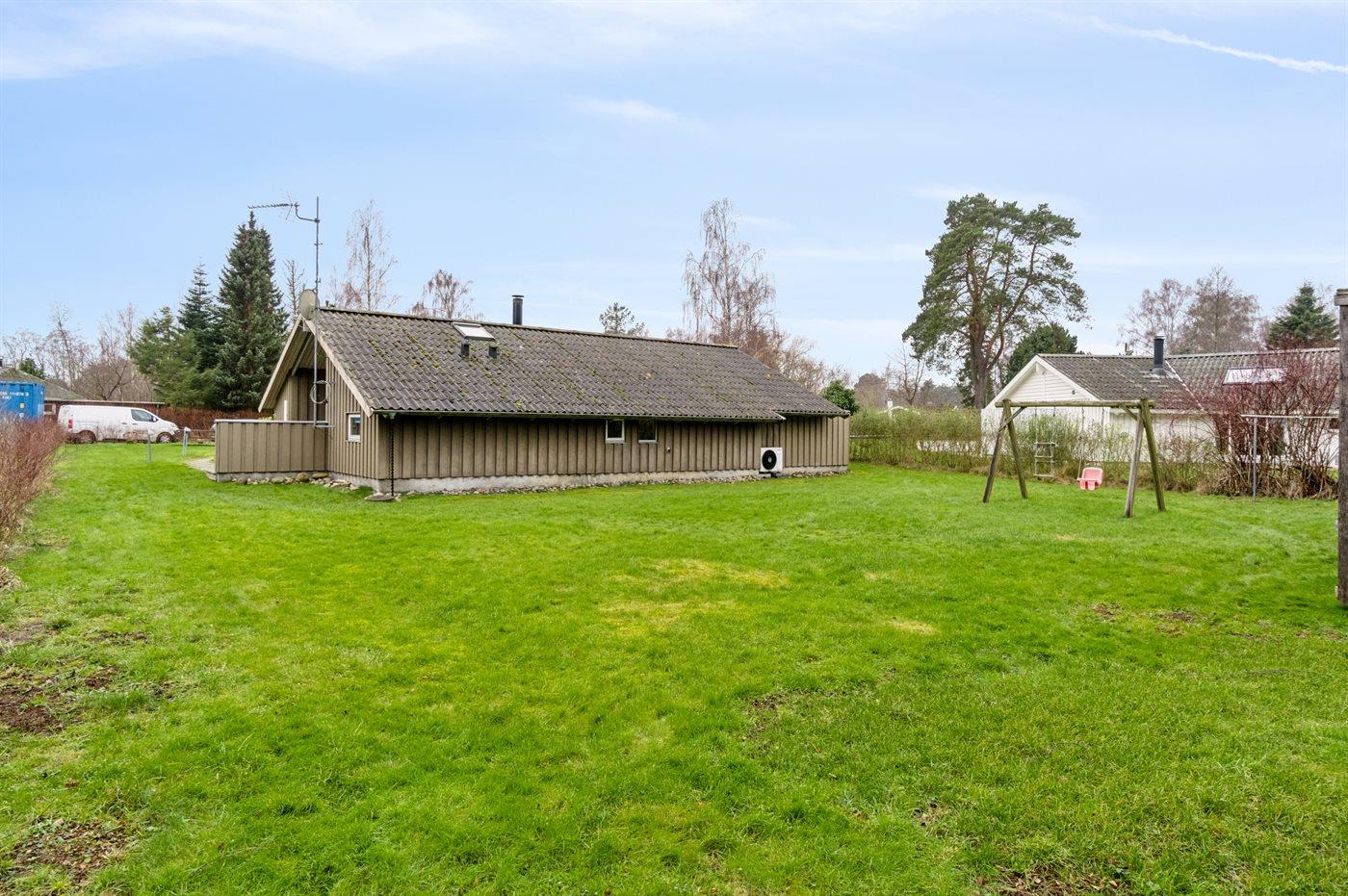 Ferieboligen er beliggende på en 1224 m² stor havegrund. Der er 1100 m til havet. Nærmeste forretning er beliggende i en afstand af 1200 m. Til ferieboligen hører åbent terrasseareal. Desuden er der overdækket terrasse. Gynge. Sandkasse. Grill til rådighed. Der er carport til rådighed. Der er installeret stik til opladning af elbil. Type 2 stik. Med 11 kW ladeeffekt. Parkering ved ferieboligen.