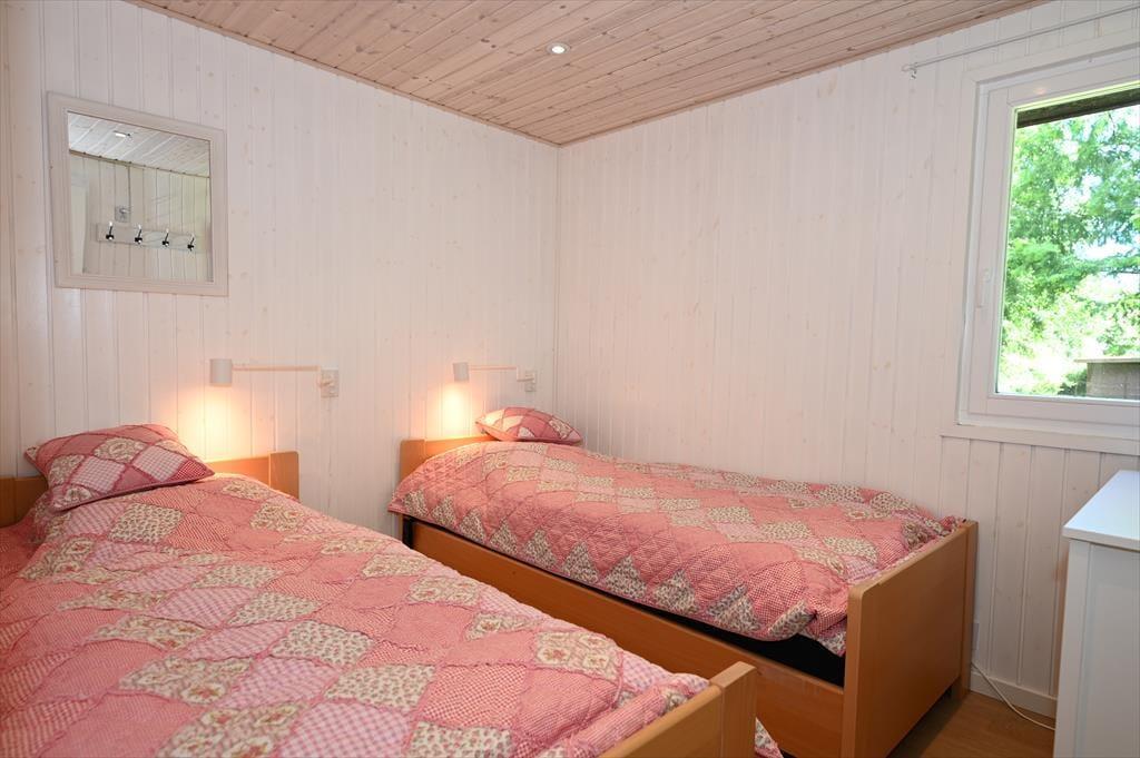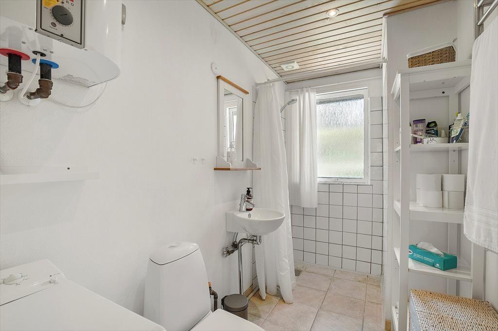 Dette sommerhus byder dig velkommen med en rummelig entré, der giver adgang til fire soveværelser, alle med dobbeltsenge – ideelt for familier eller vennepar, der ønsker at nyde ferien sammen. Badeværelset er velindrettet med bruser og toilet.
