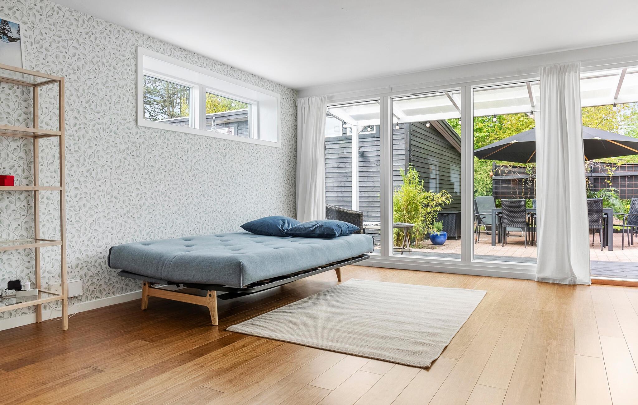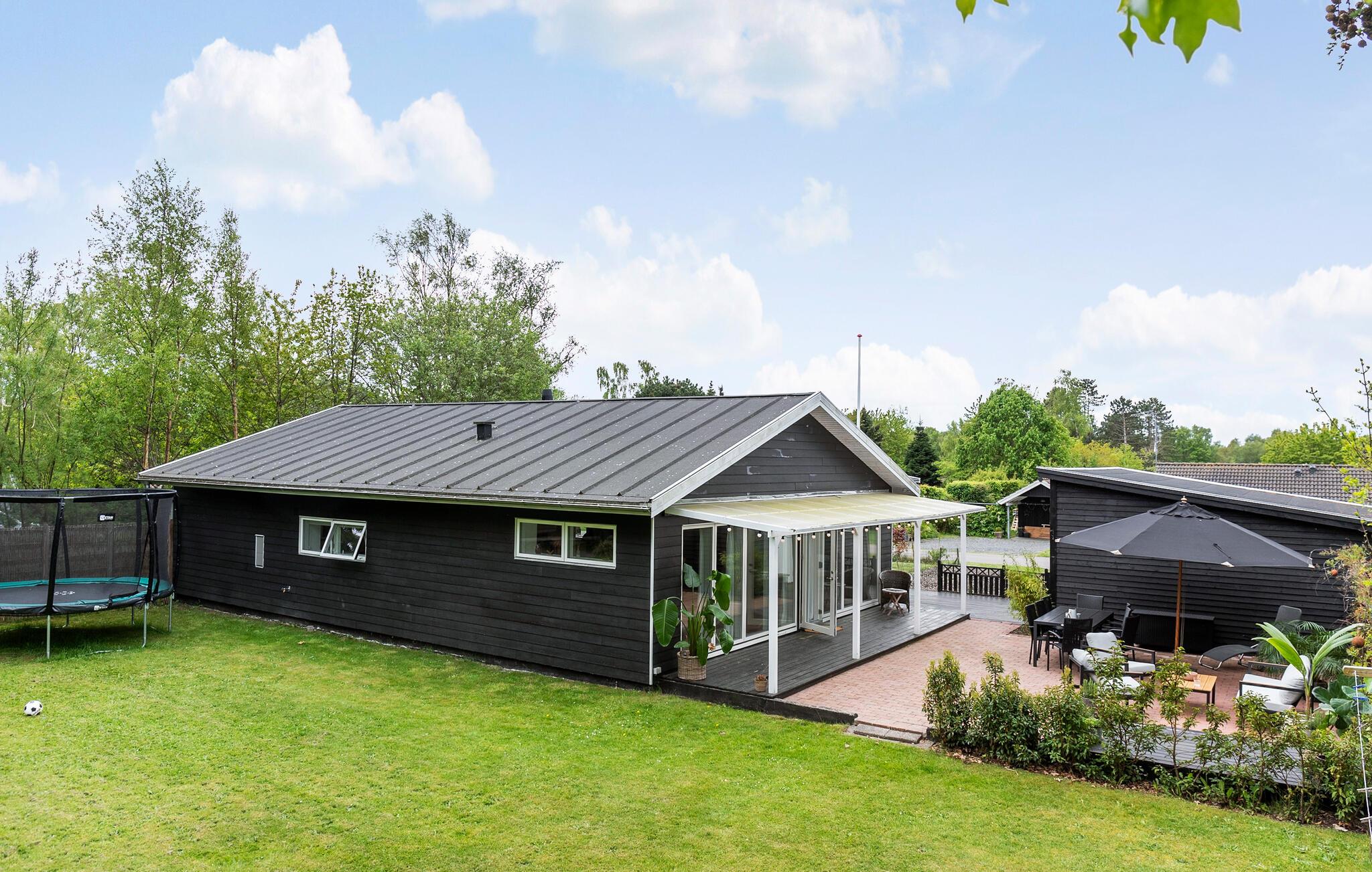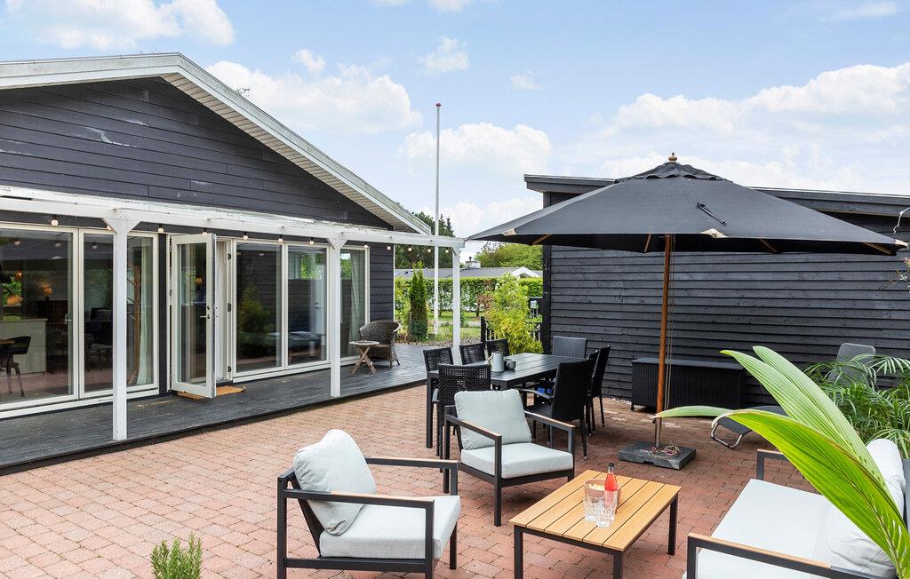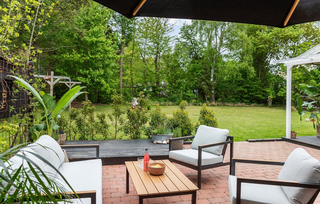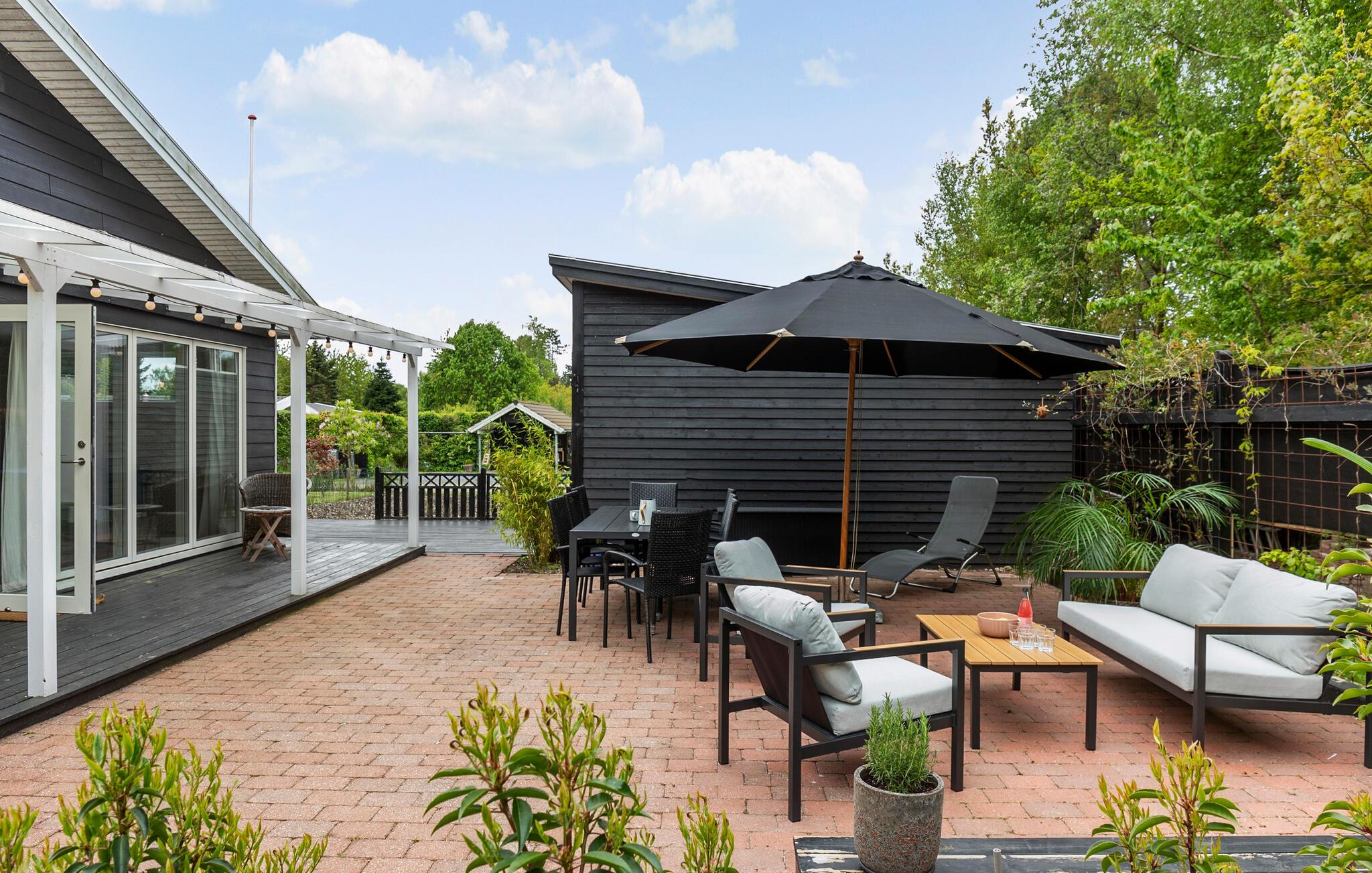 Terrassen lægger op til mange gode stunder udendørs. Begynd dagene med en afslappet morgenmad, lad børnene boltre sig på trampolinen, nyd gode samtaler på de komfortable loungemøbler og find sammen omkring bålstedet eller grillen på varme sommeraftener.