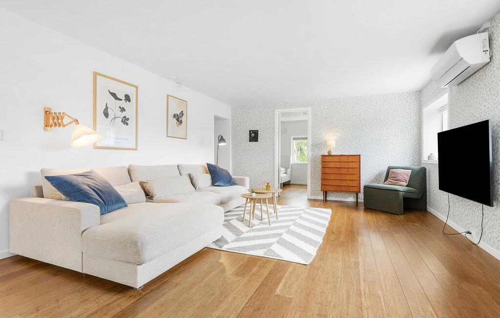 Velkommen til dette lyse og stilfulde feriehus, hvor en hyggelig pause med familien venter jer. Fremstil lækre retter med friske råvarer fra gårdbutikken i det åbne køkken og sæt jer ved det stilfulde spisebord. Hyg jer i den rummelige sofagruppe til en filmaften eller fordyb jer i en god bog.