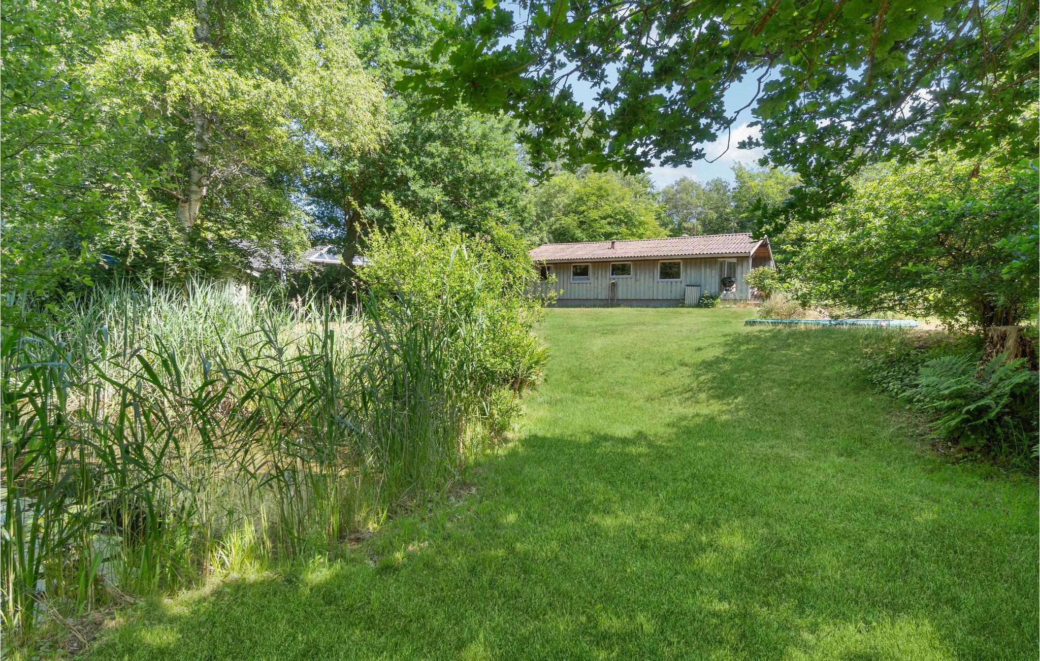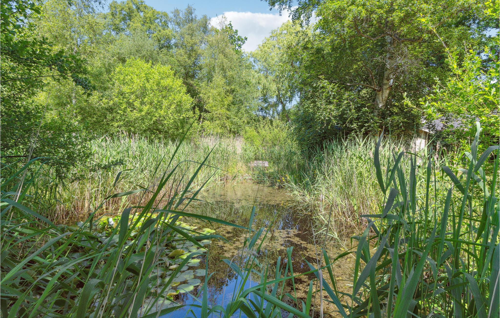 Dette familieferiehus byder velkommen på en idyllisk naturgrund med en lille sø.
