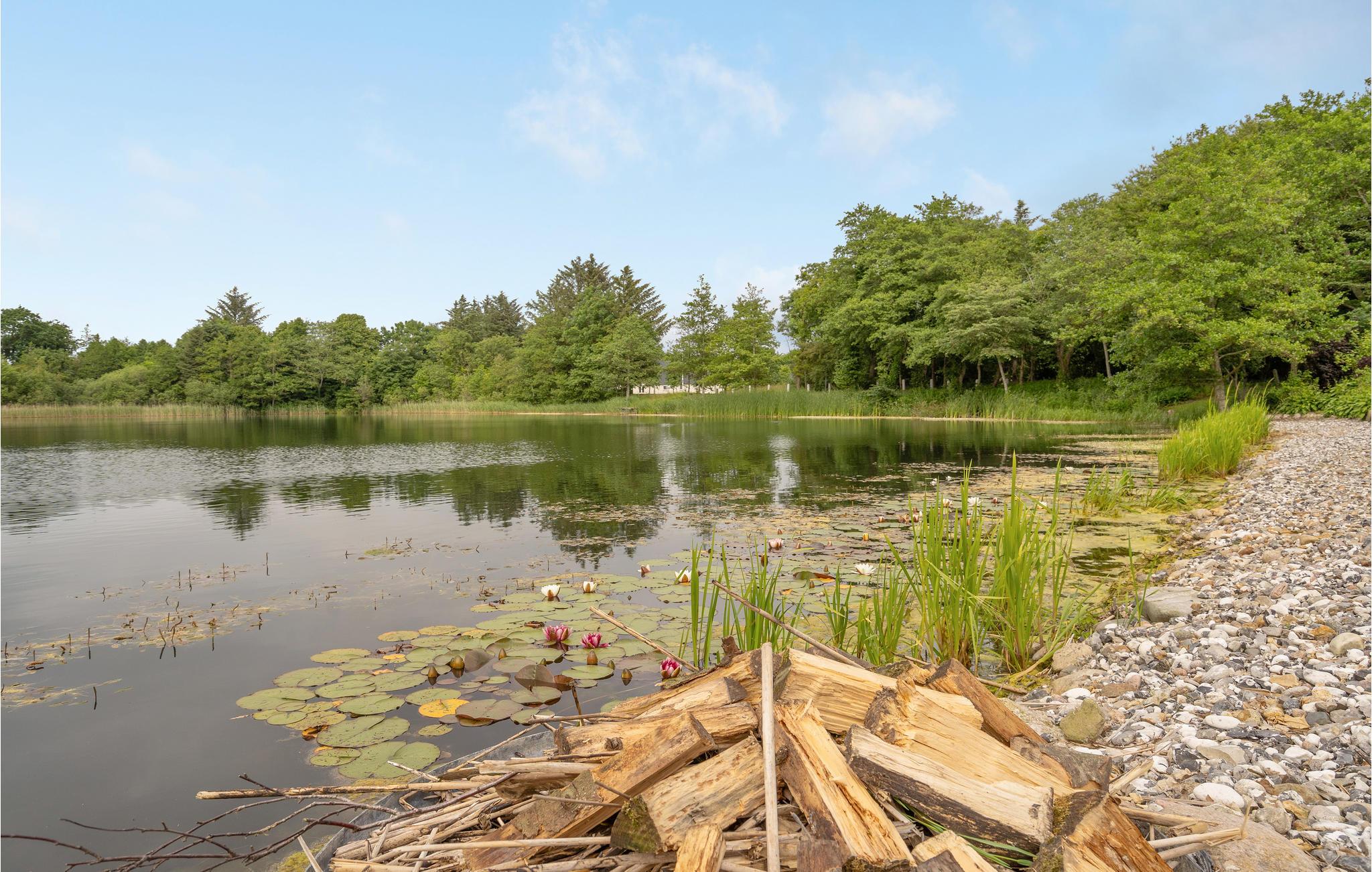 Sommerhus med panoramaudsigt og bålplads ved søen