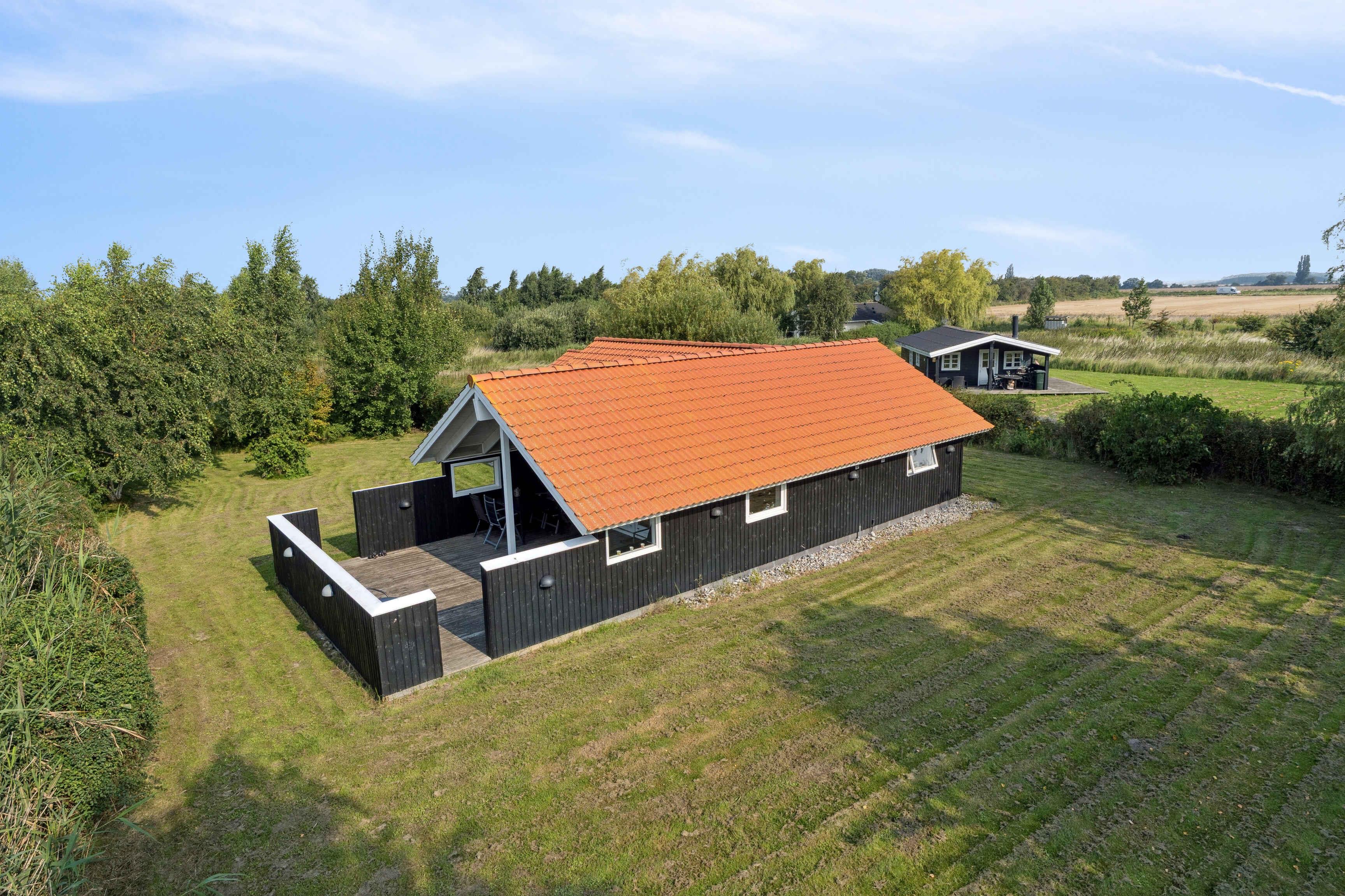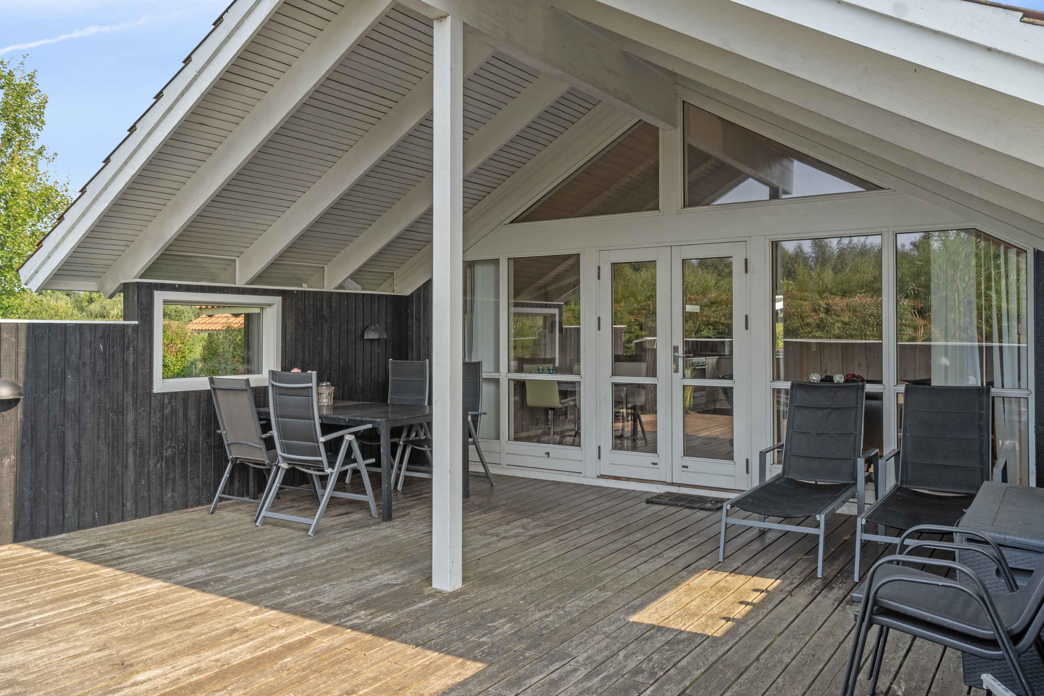 I roligt område ca. 700 m fra badestrand ligger dette sommerhus med stor, delvist overdækket terrasse. I den store have, der er solidt indhegnet for børn og hunde,