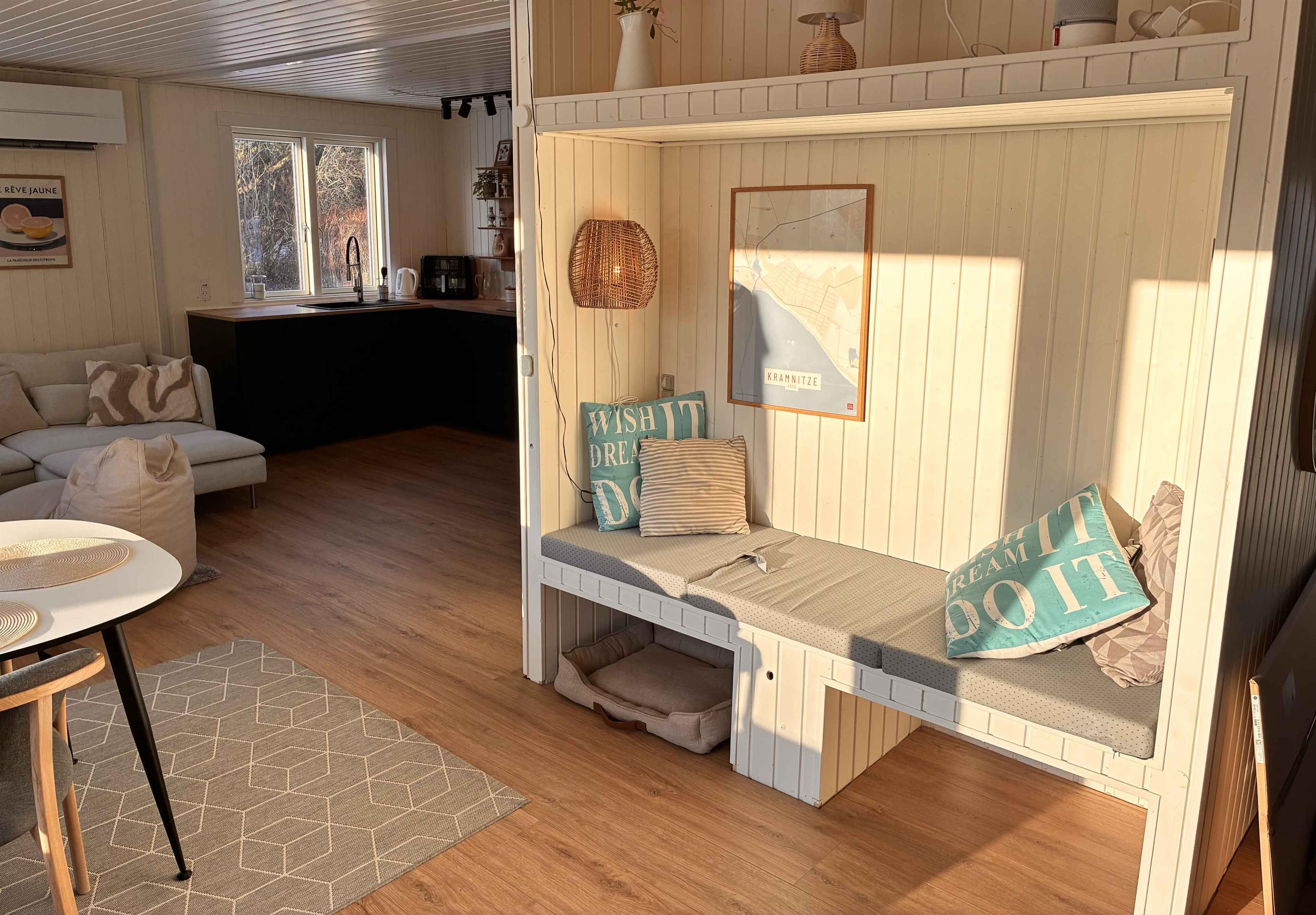 Sommerhuset ligger i det rolige og charmerende Kramnitze tæt på diget og havet. Her er gode muligheder for både gå- og cykelture samt badning fra badebroen lige ved adgangen til stranden. Huset har en perfekt beliggenhed på rolig vej, kun 250 meter fra stranden, hvor der findes købmand(selvbetjent døgnåbent) Pizzaria(sommer åbent) og ishus (sommer åbent) Kramnitze har også et hyggeligt gammelt fiskerleje, nu også med shelterplads og beachvolleybane. Sommerhuset er nyrenoveret i 2026, perfekt til børnefamilier og gæster med hund. I stuen er der en hyggelig alkove til læsning og afslapning samt en dejlig brændeovn, som skaber ægte sommerhusstemning året rundt. Sommerhuset byder desuden på lynhurtig fibernet, Chromecast, Apple TV, PlayStation 4 og brætspil til hyggelige stunder indendørs. Huset har 3 soveværelser og maks 6 personer: 1. Værelse: 120 cm 1½ mandsseng 2. Værelse: 160 cm dobbeltseng 3. Værelse: 140 cm dobbeltseng, 90 cm enkeltseng, 90 cm Køjeseng Udenfor finder I en stor, en lukket( trådhegn) have, ideel til leg for børn og tryg plads for hunden. Den store terrasse med gasgrill indbyder til fælles måltider og lange sommeraftener. Området byder på skøn natur, gode gåture i dyrerigt område og digestien til gå- og løbeture. Hvis stranden ikke er nok for de vandglade, findes Lalandia kun 6 km væk langs diget eller en tur i Knuthenborg for de dyreglade børn. Et skønt sommerhus med plads til hele familien – også den firbenede ????