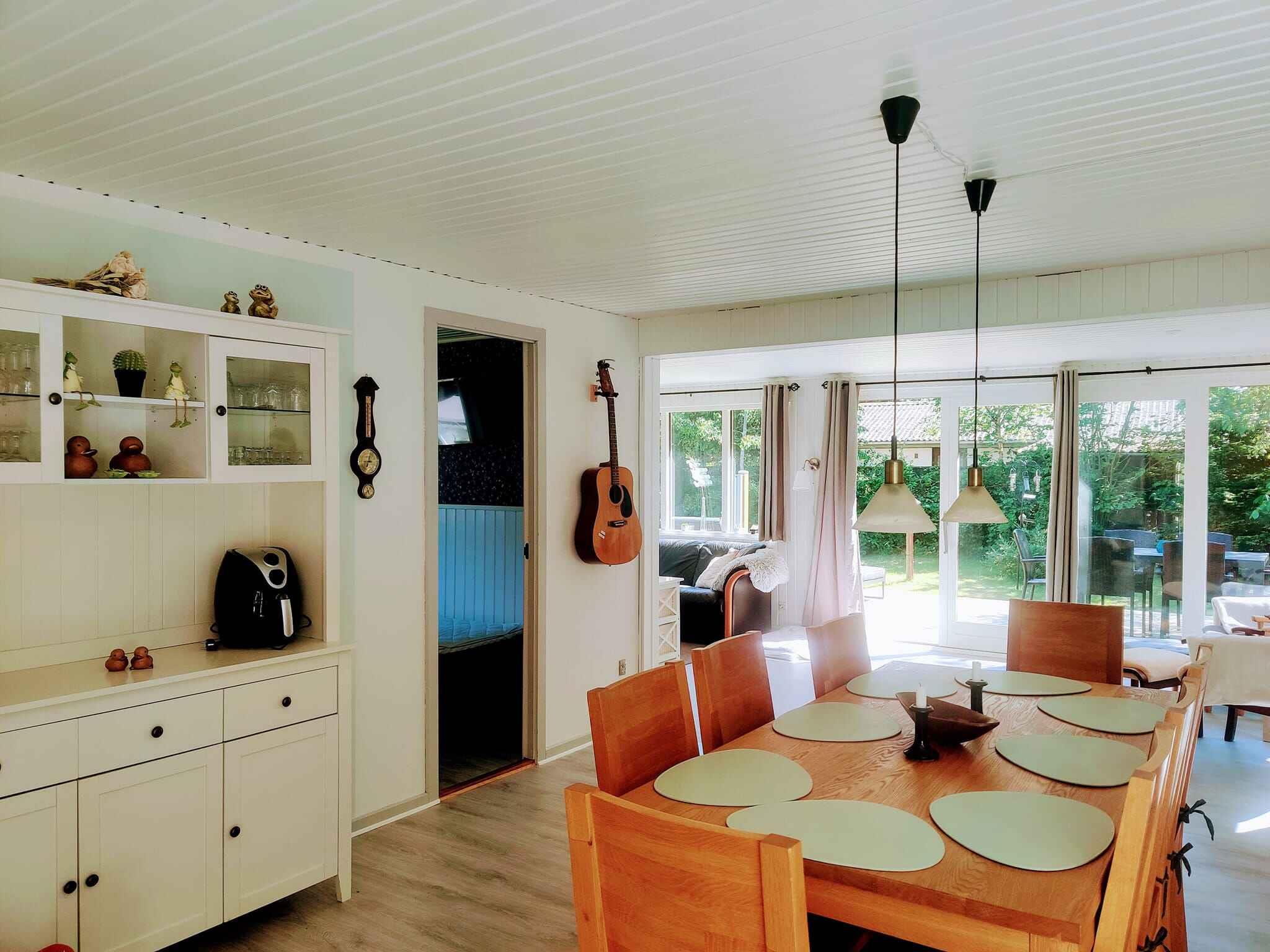 Ohana - vores lille perle i det dejlige Kramnitze vil helt sikkert bringe dig og din familie ligeså stor glæde som det bringer os. Ohana betyder familie, og netop dét har været vores idé fra overtagelse til istandsættelse. Den store hyggelige vinkelstue giver mulighed for både hygge og fællesskab - både hvis I ønsker at sidde i sofaen og hygge, eller ved det store spisebord og spille spil eller nyde dejlig feriemad. Eller man kan blot sidde og nyde haven gennem de store vinduer, hvor man har første parket til det rige dyreliv, som Kramnitze også byder på. Det gode vejr kan også nydes på den store sydvendte terrasse. Her er plads til både spisning og solbadning, men der er også masser af plads til leg i haven. Grill forefindes i sommerhuset, hvis man skulle få lyst til at grille. Udover den store terrasse, er der yderligere en mindre overdækket terrasse samt en helt ugeneret gårhave. Haven er indhegnet og du er velkommen til at medbringe din hund. Den vil helt sikkert nyde at gå ture i det skønne område, som Kramnitze byder på. På jeres gåture vil I have mulighed for at se både rådyr, fasaner og egern. I kan også vælge at gå en tur til stranden, denne ligger max. 5 minutters gåtur fra sommerhuset. Her er der både mulighed for at bade, evt fra badebroen, og samle smukke muslingeskaller. På vejen tilbage er der rig mulighed for at handle ind hos købmanden, som ligger blot 400 m fra sommerhuset, eller tage en pizza med hjem fra pizzariaet. Alle værelser har TV med Chromecast og sammen med fibernet/WiFi er underholdningen sikret til aftenerne eller hvis der skulle komme en regnvejrstime. Huset indeholder 2 soveværelser, 1 med halvandenmandsseng og 1 med to enkeltsenge, men hvor det er muligt at flytte dem sammen, hvis man ønsker en dobbeltseng. Derudover er der et, uopvarmet, anneks med 2 enkeltsenge, men også her er der mulighed for at skubbe dem sammen.