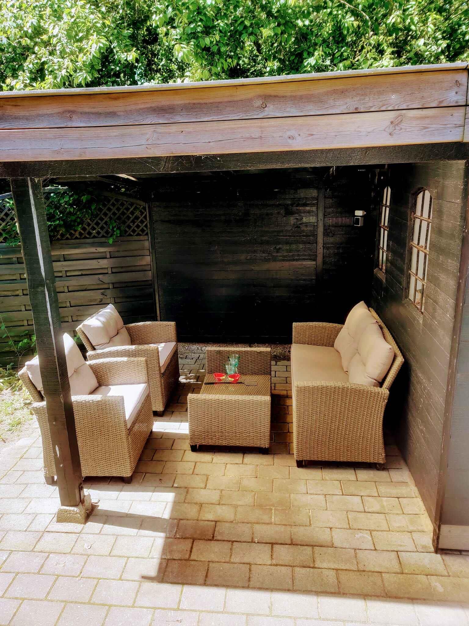 Hyggeligt sommerhus med stor terrasse, tæt på børnevenlig strand og indkøb i Kramnitze.