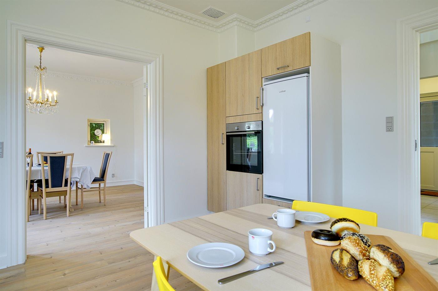 Køkkenet er udstyret med 1 køleskab, varmluftovn samt opvaskemaskine.