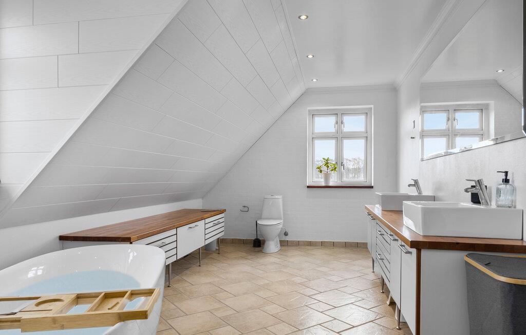 Badeværelse (nr. 1) - WC. Varmt og koldt vand. Bruser og badekar